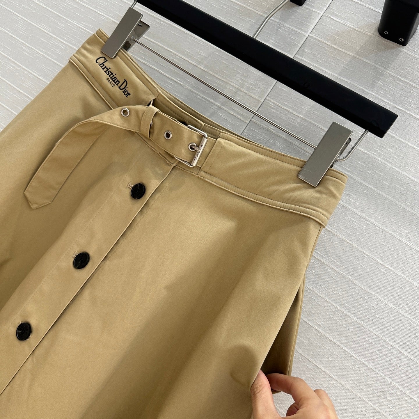 CD 25 Belted Single-breasted Long Skirt Khaki Cotton