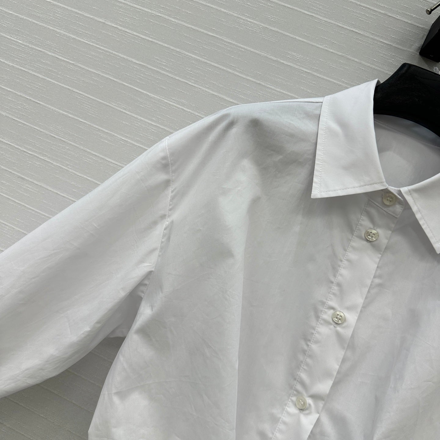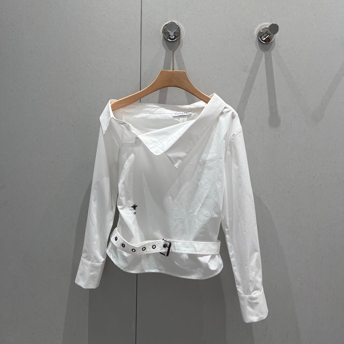 CD 25 Off-shoulder Pleated Belt Short Shirt White Cotton 217596