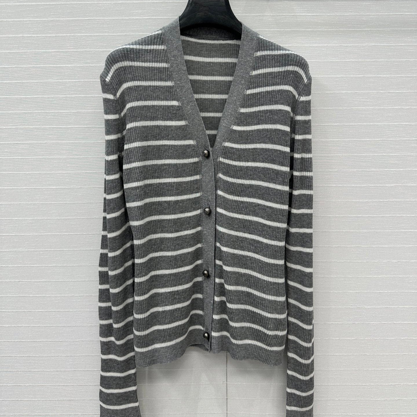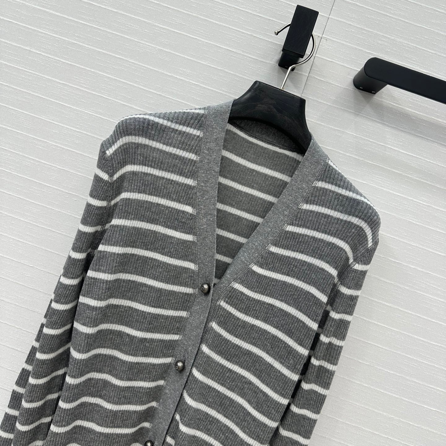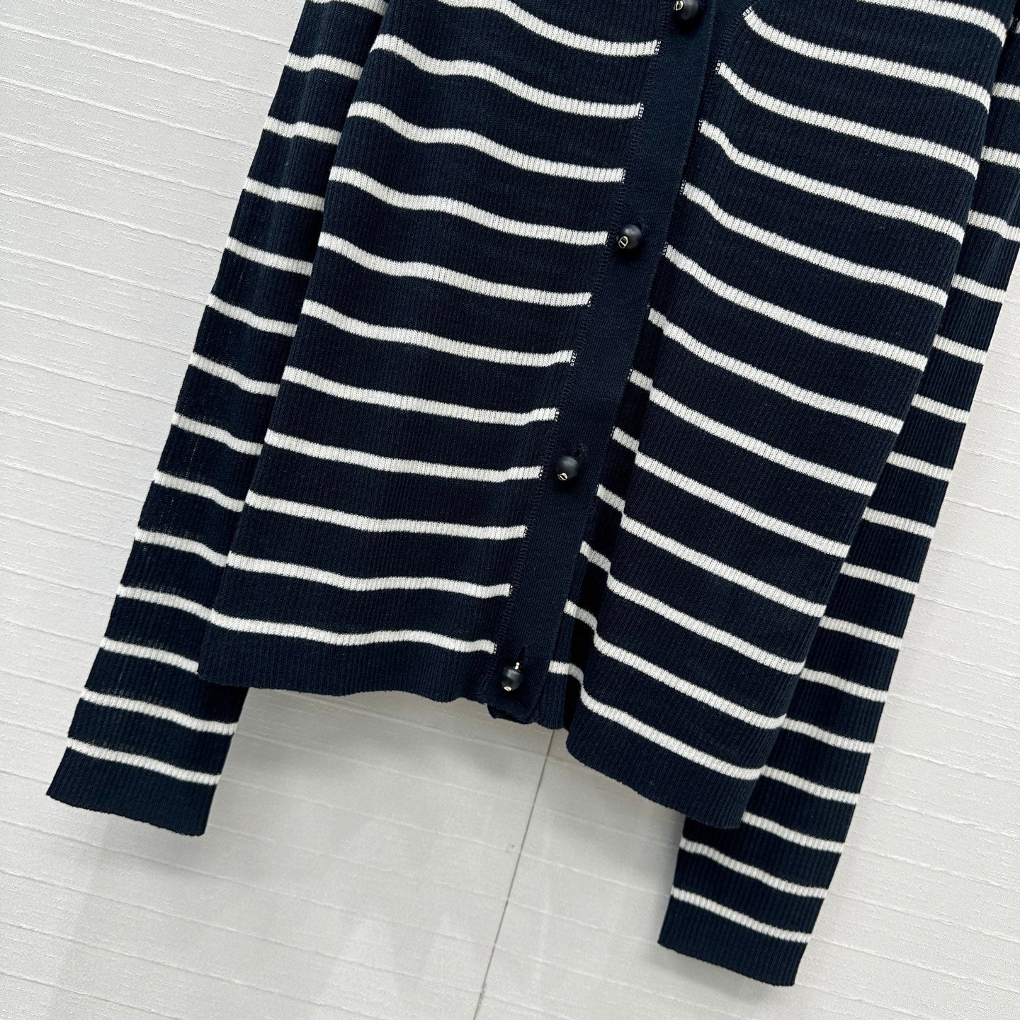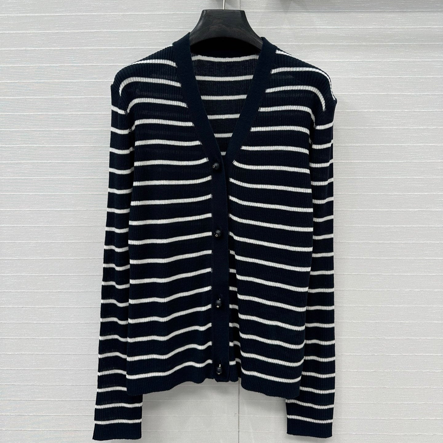 CD 25 Striped Knitted Long-sleeved Top Black Cotton