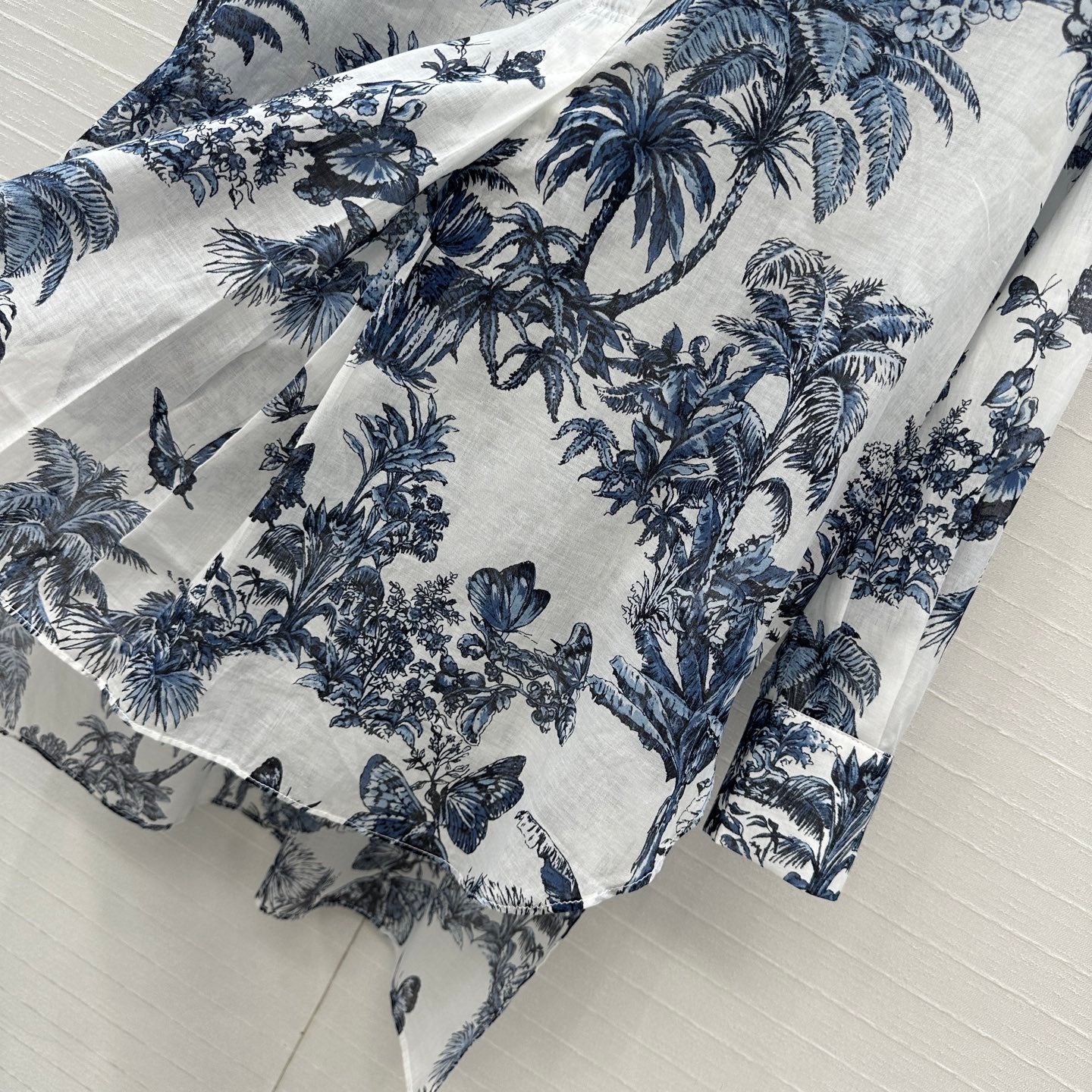 CD 25 Butterfly Coconut Print Tube Dress White Blue Cotton