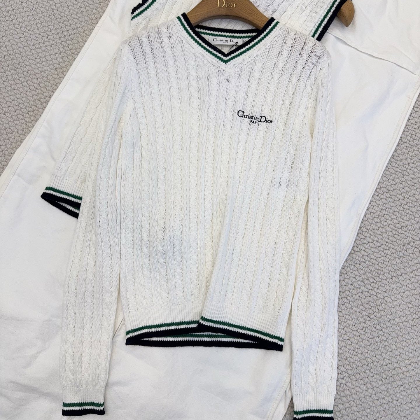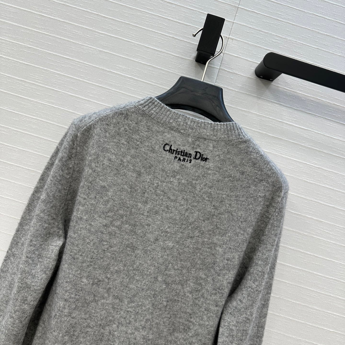 CD Embroidered Logo Sweater Beige Wool Cotton