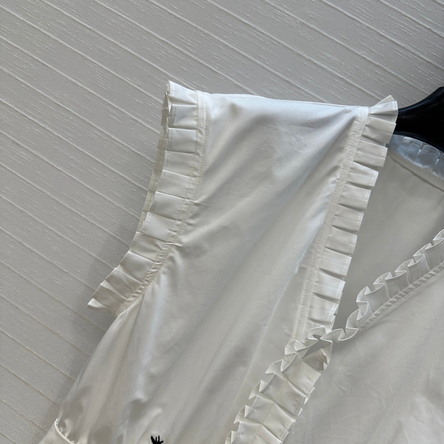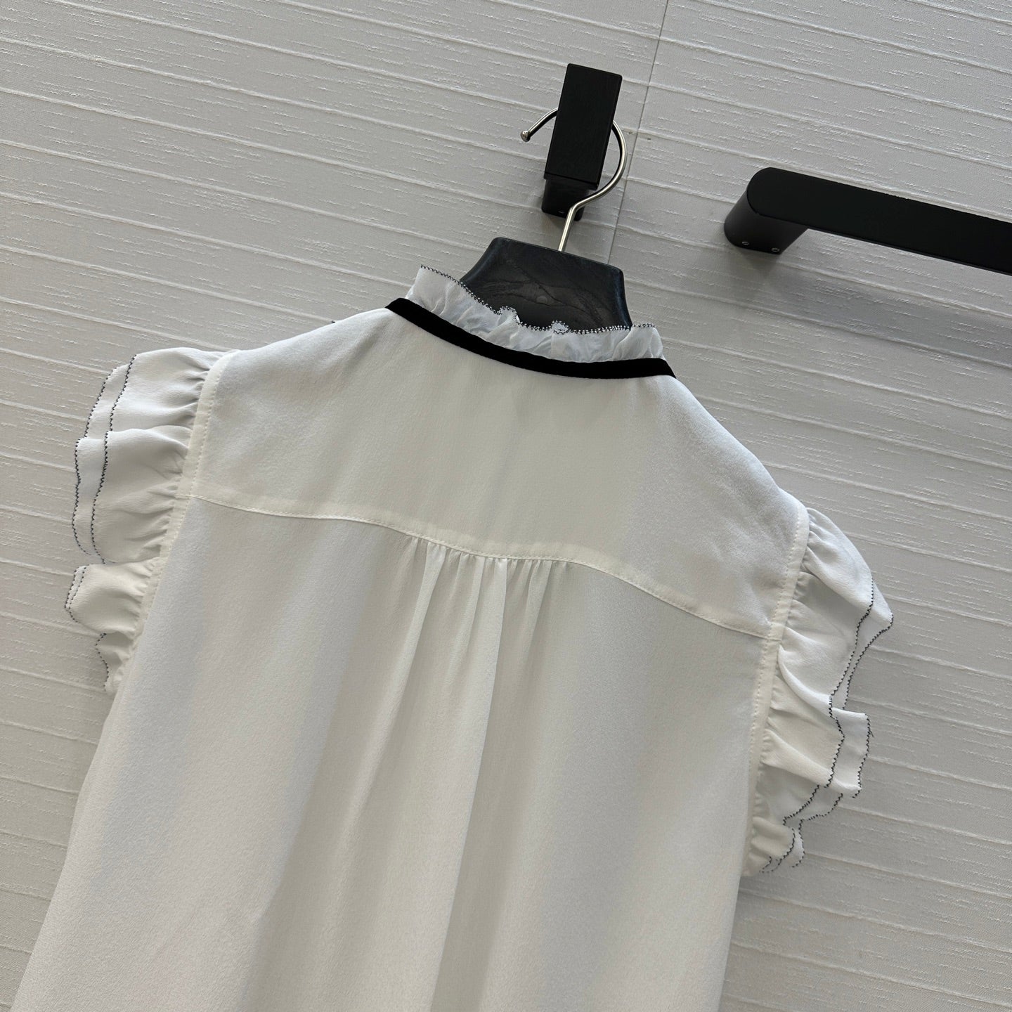 CD 25 Flying Sleeve Short Shirt White Pink Cotton