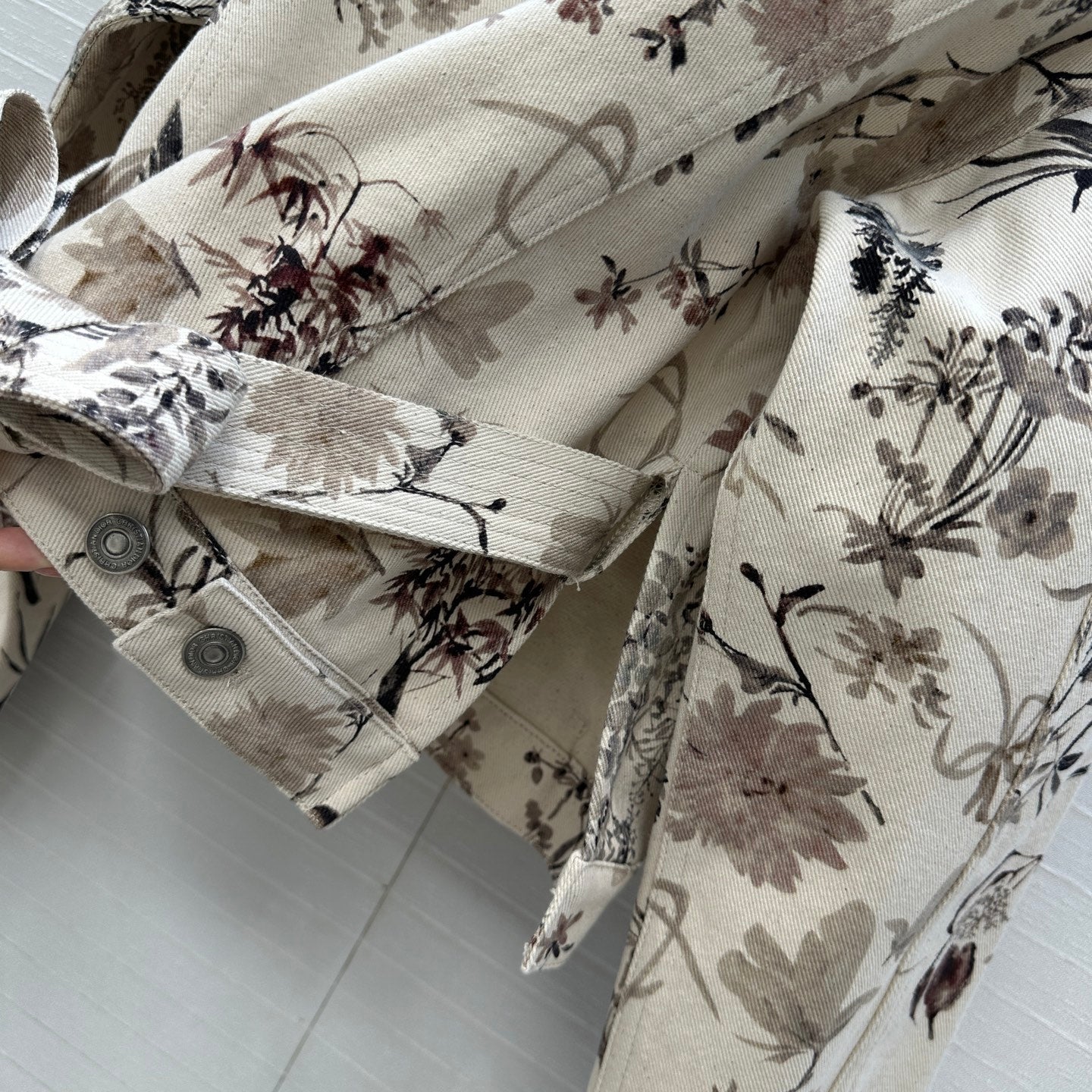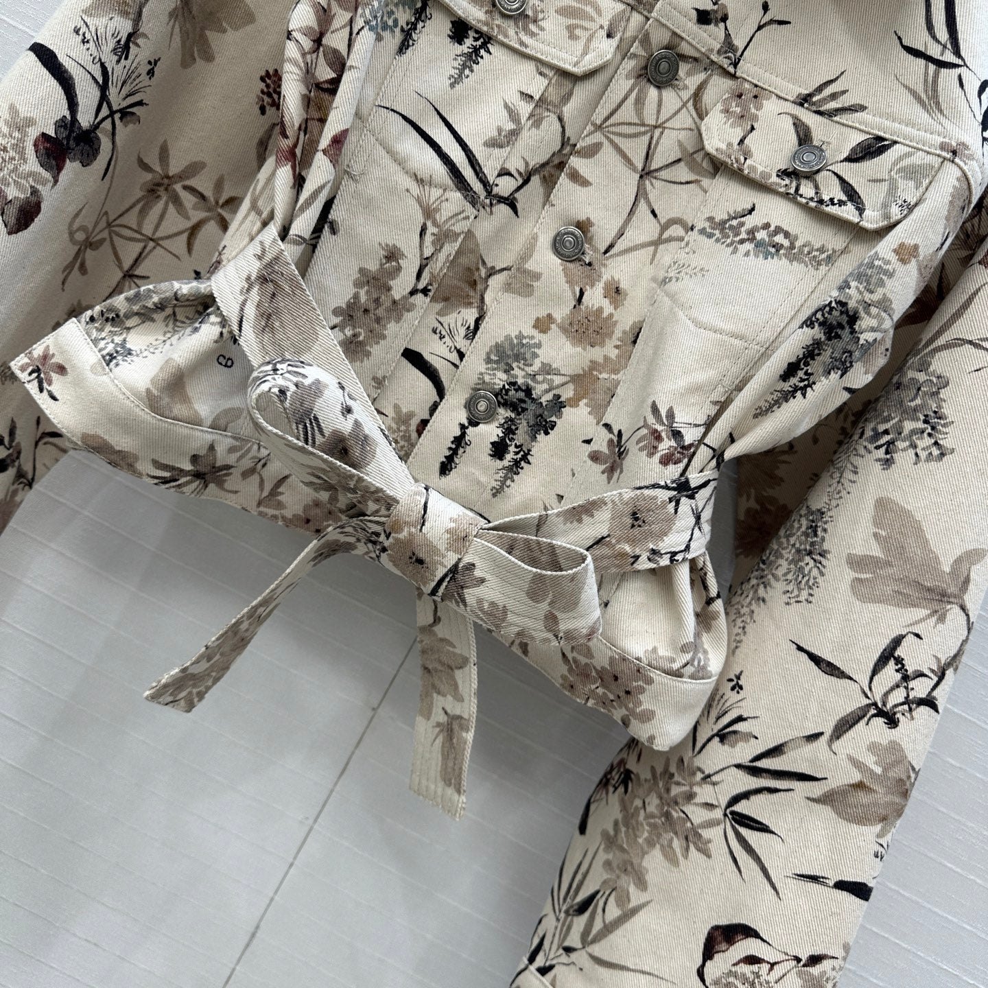 CD 25 Waist Tie Short Jacket Beige Cotton Cashmere