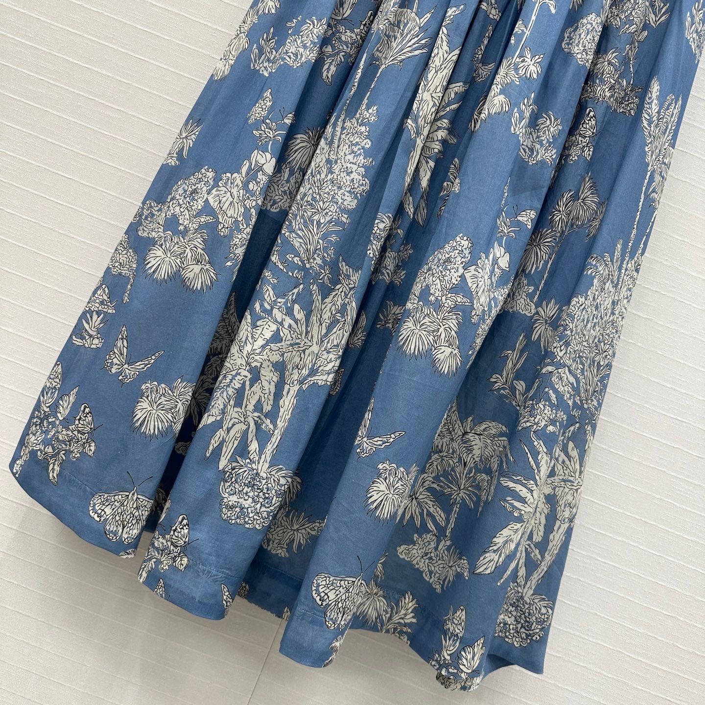 CD 25 Sauvage Jouy Print Button Dress Light Blue mix White Cotton