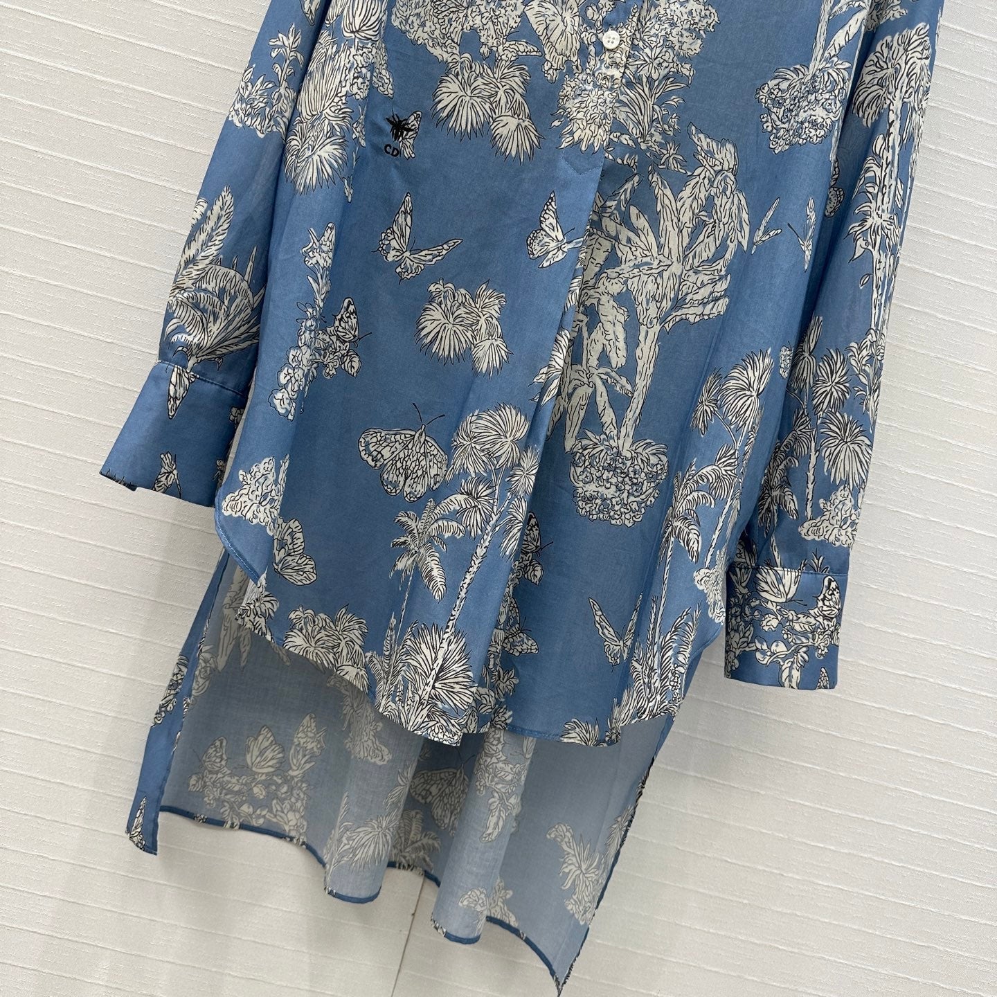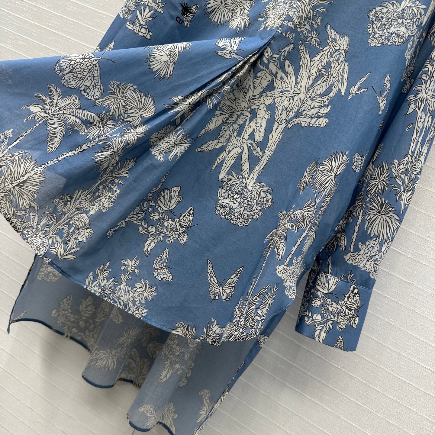 CD 25 Sauvage Jouy Button-down Dress Blue White Cotton
