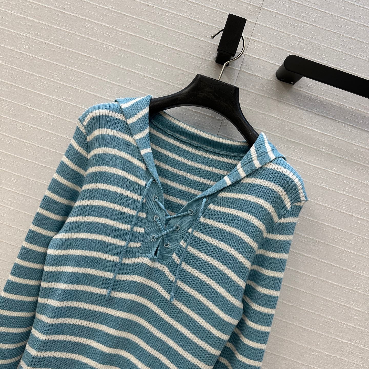CD Navy Style Collared Sweater Ligth Blue mix White Wool