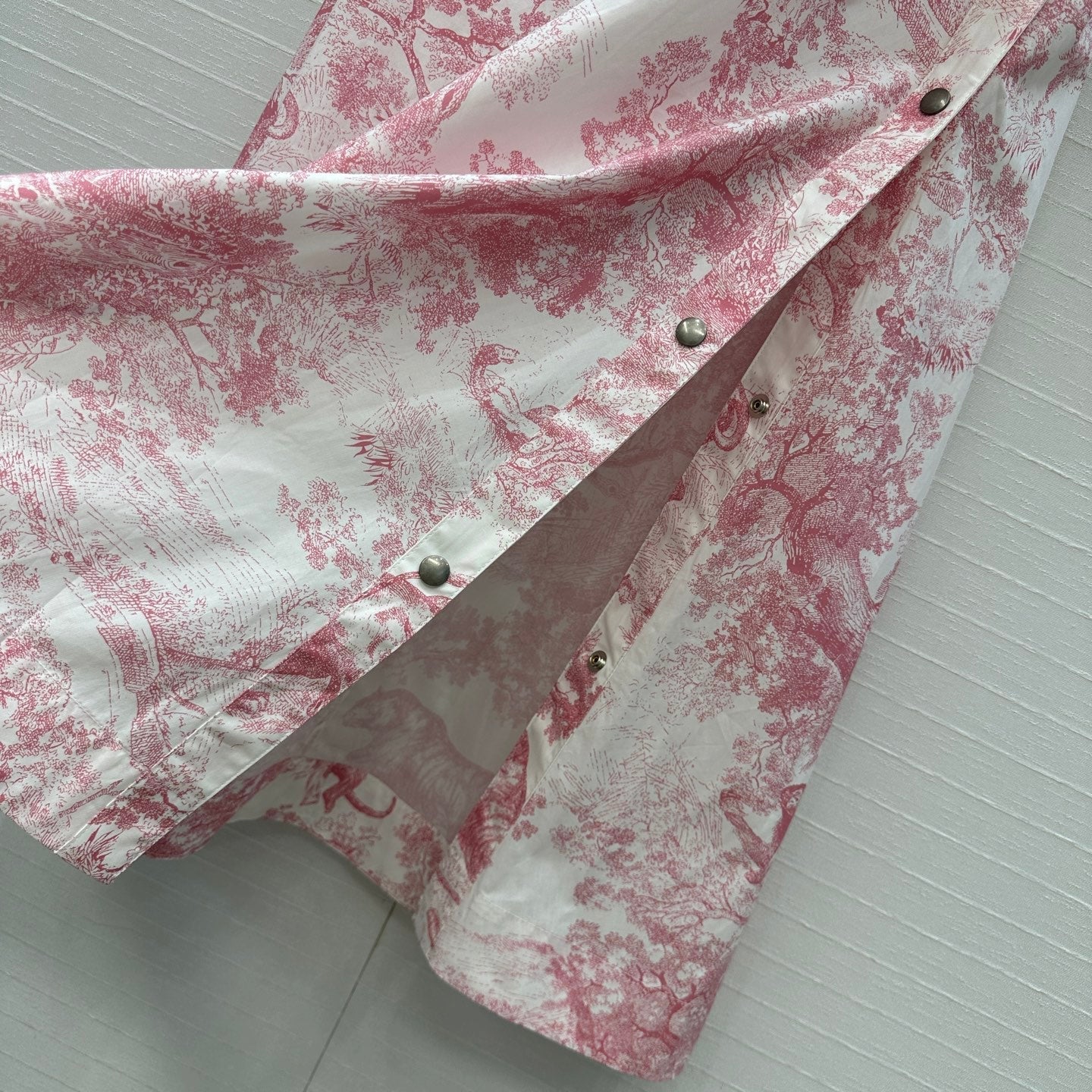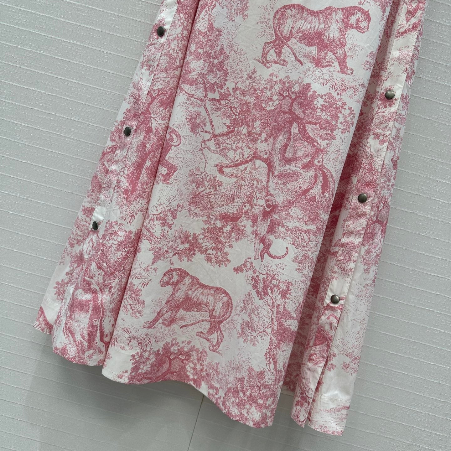 CD 25 Sauvage Jouy Button-down Dress Pink White Cotton