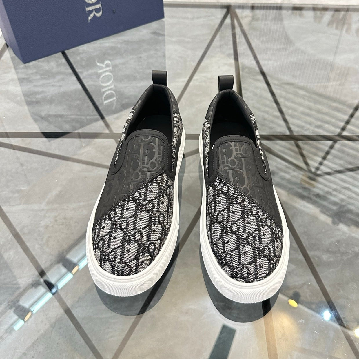 CD Slip on loafer Black Blue Cowhide Fabric 647996