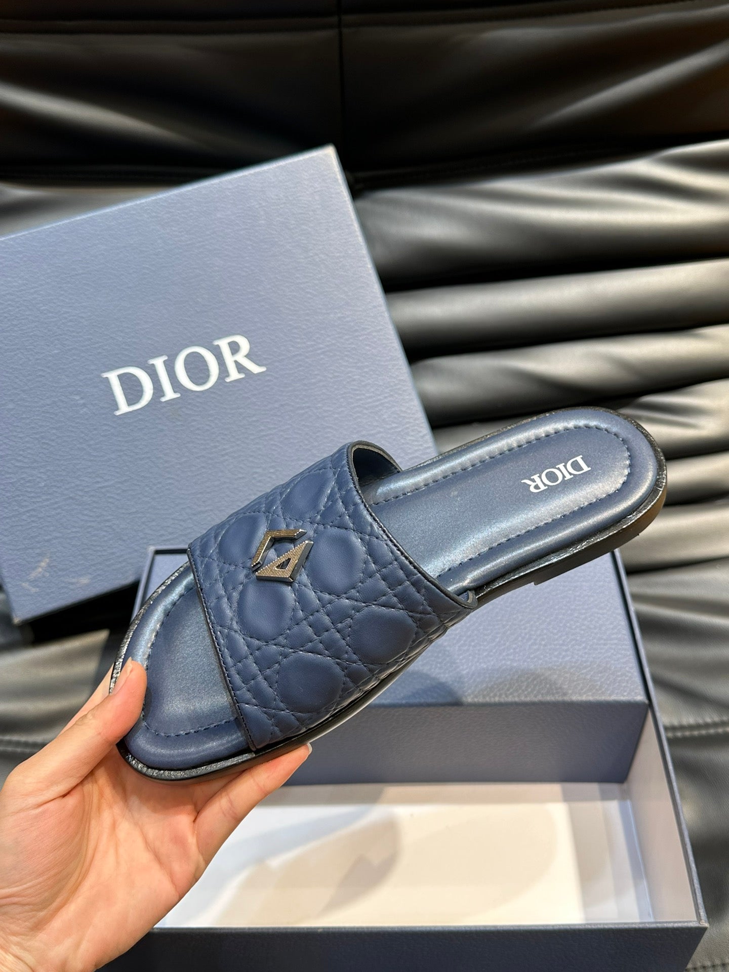 CD ALIAS SUMMER SLIPPER NAVY EMBOSSED CALFSKIN