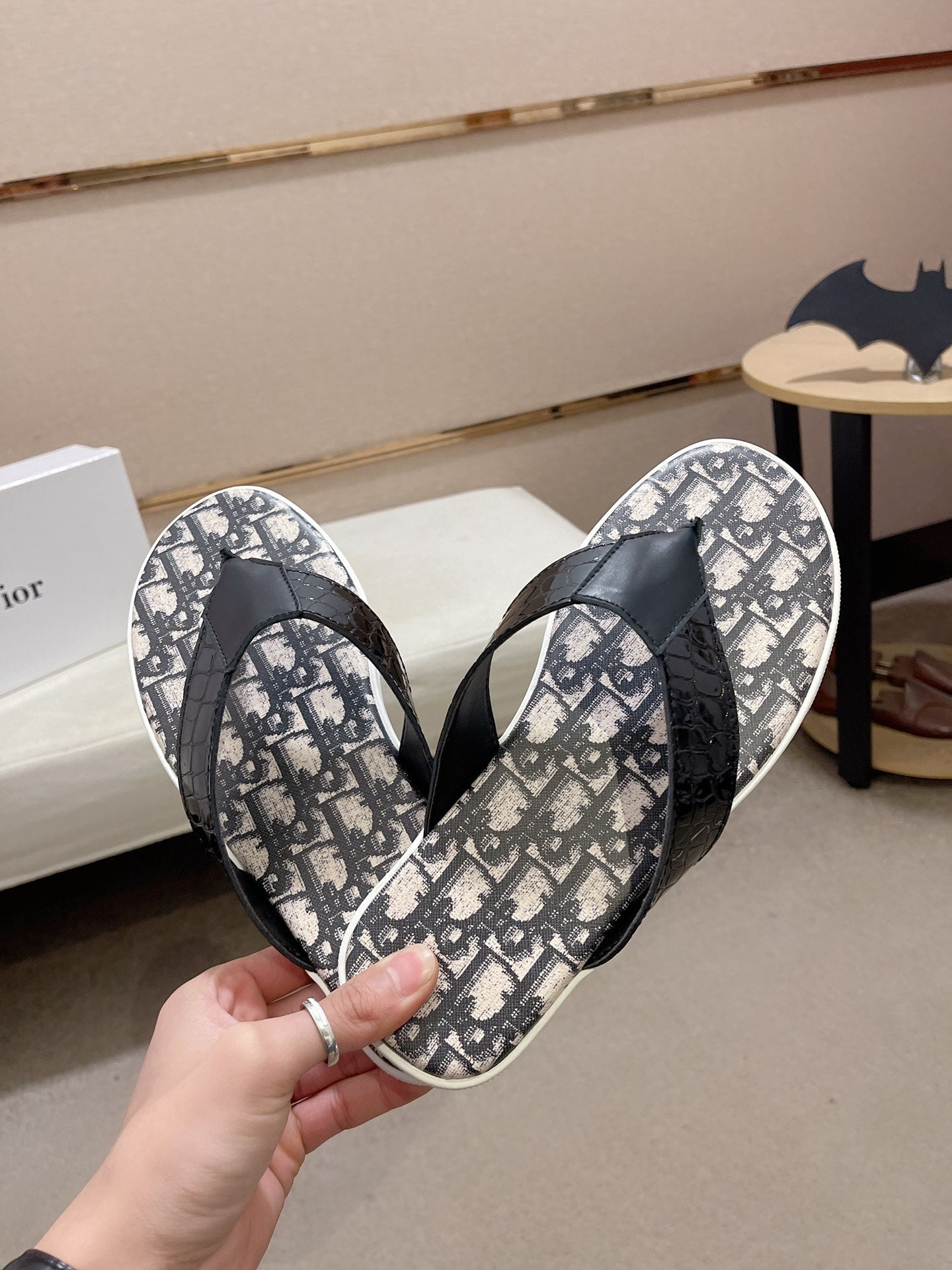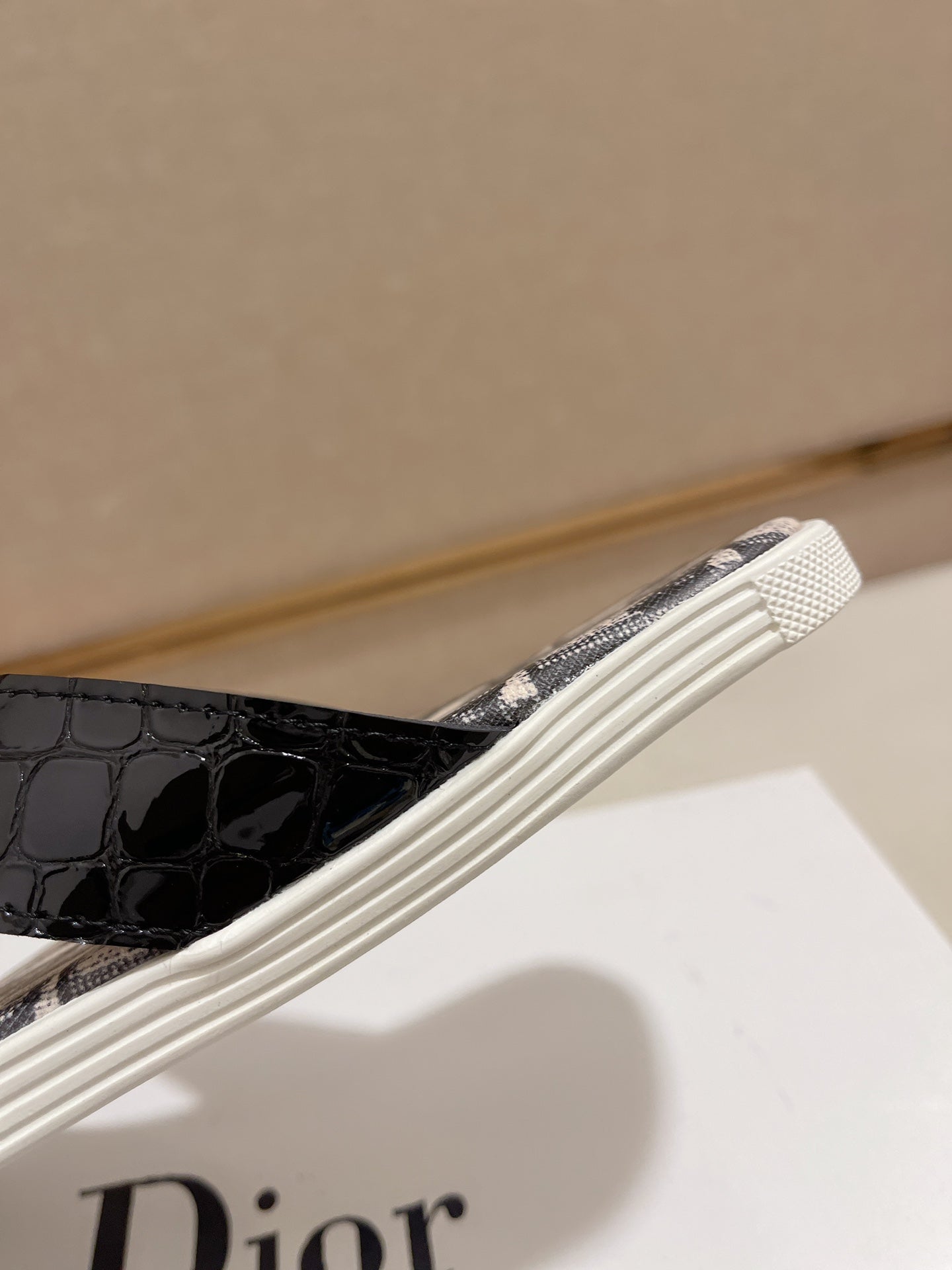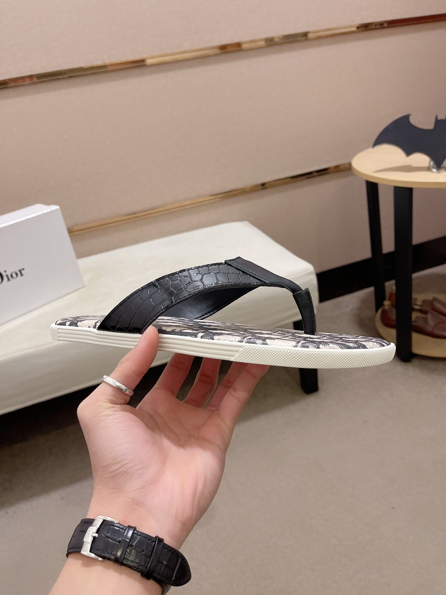 CD ALIAS THONG CROCODILE MOTIF BLACK AND BEIGE CALFSKIN