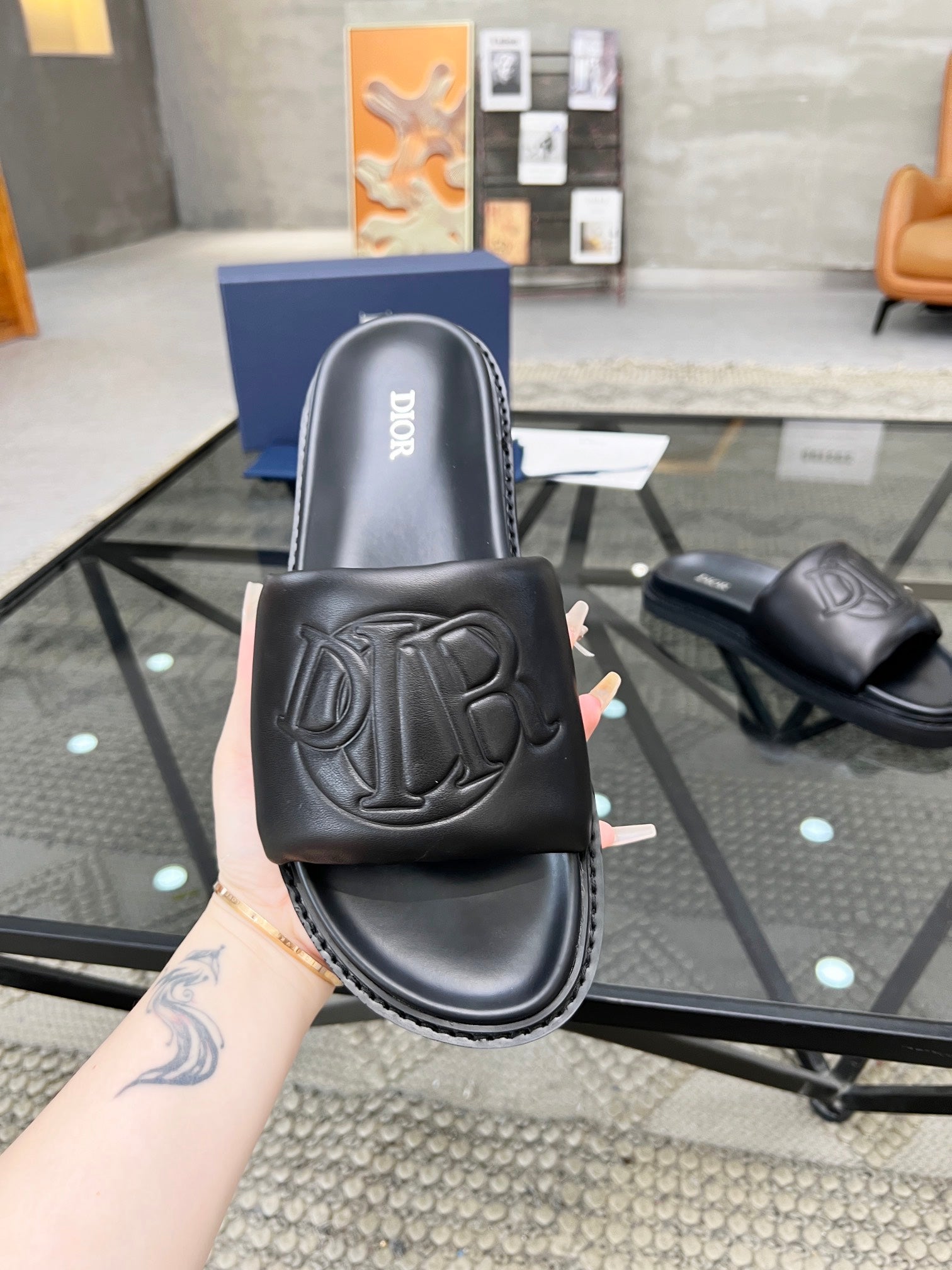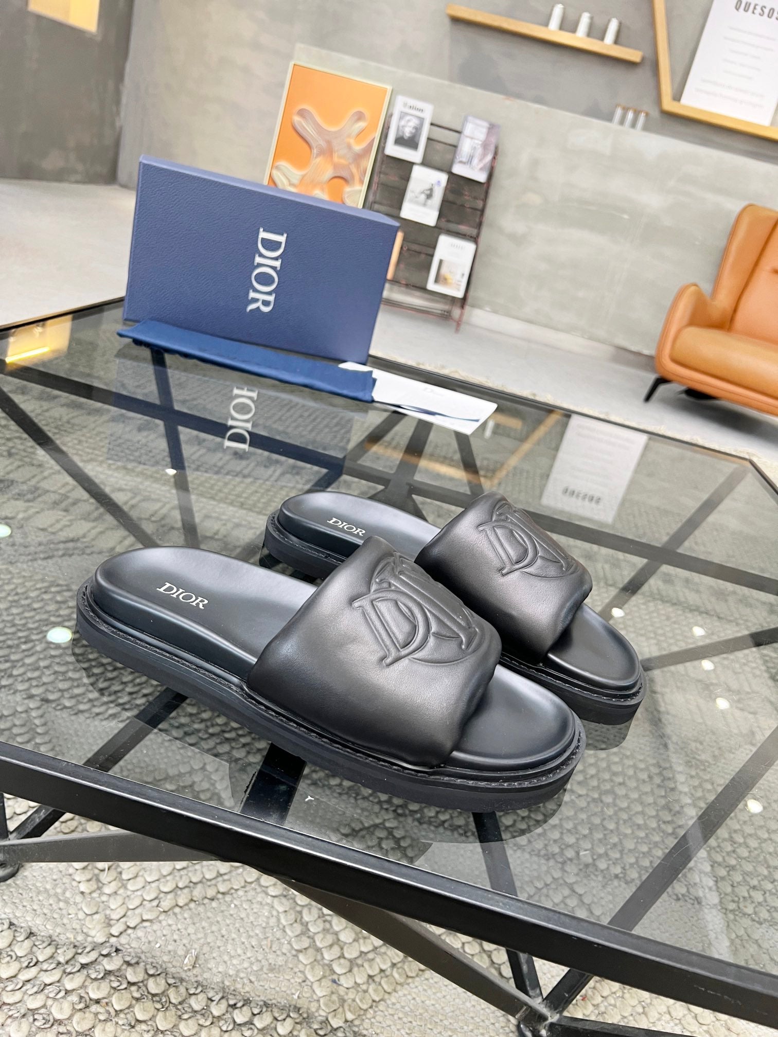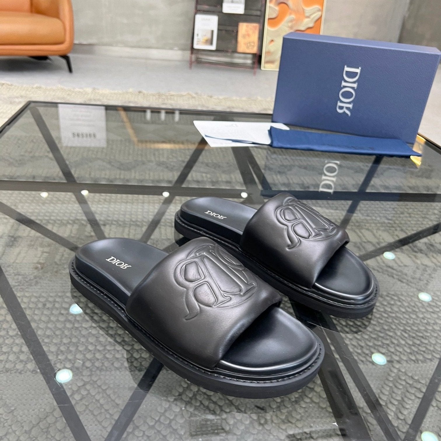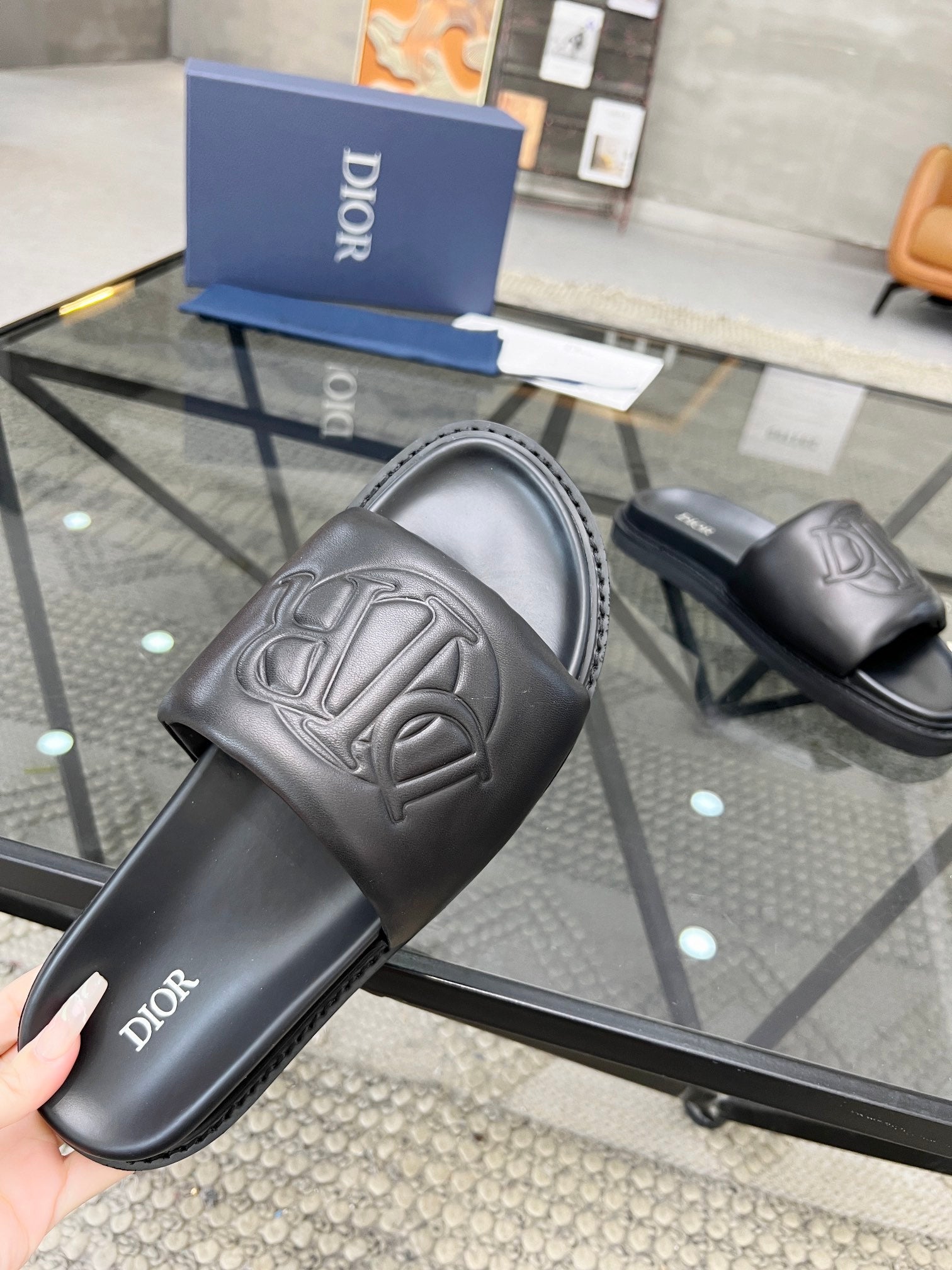 CD AQUA SLIDE SANDAL BLACK CALFSKIN