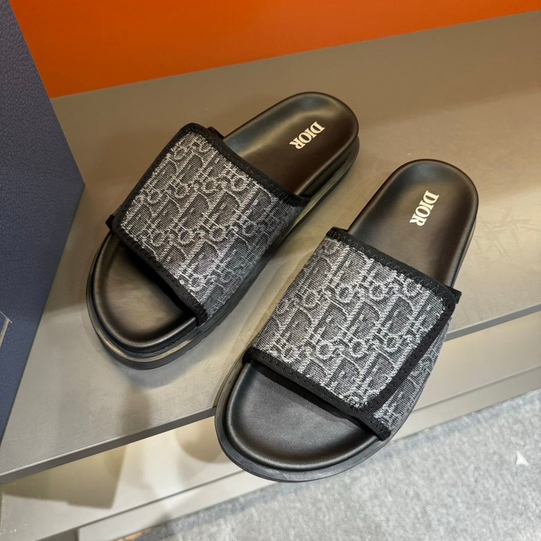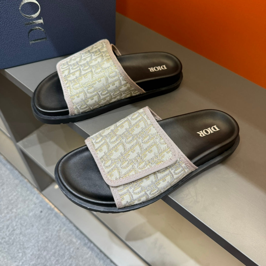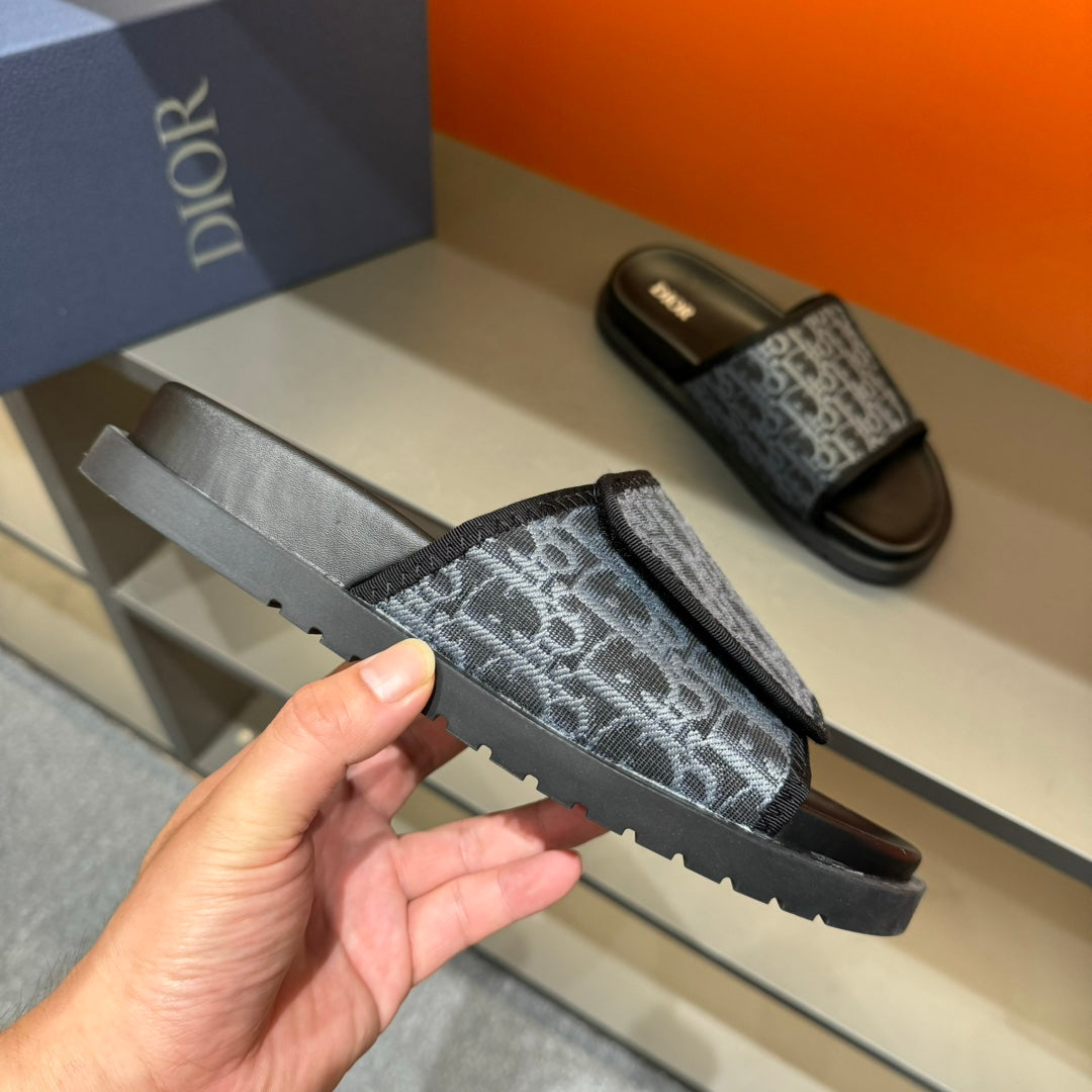 CD VELCRO STRAP SLIPPER BLACK JACQUARD