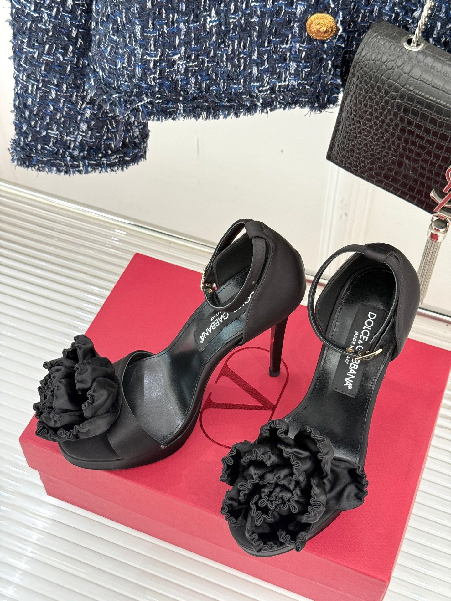 DC 24 Keira Floral-Appliqué Sandals Black Sheepskins & Cowhide 304708