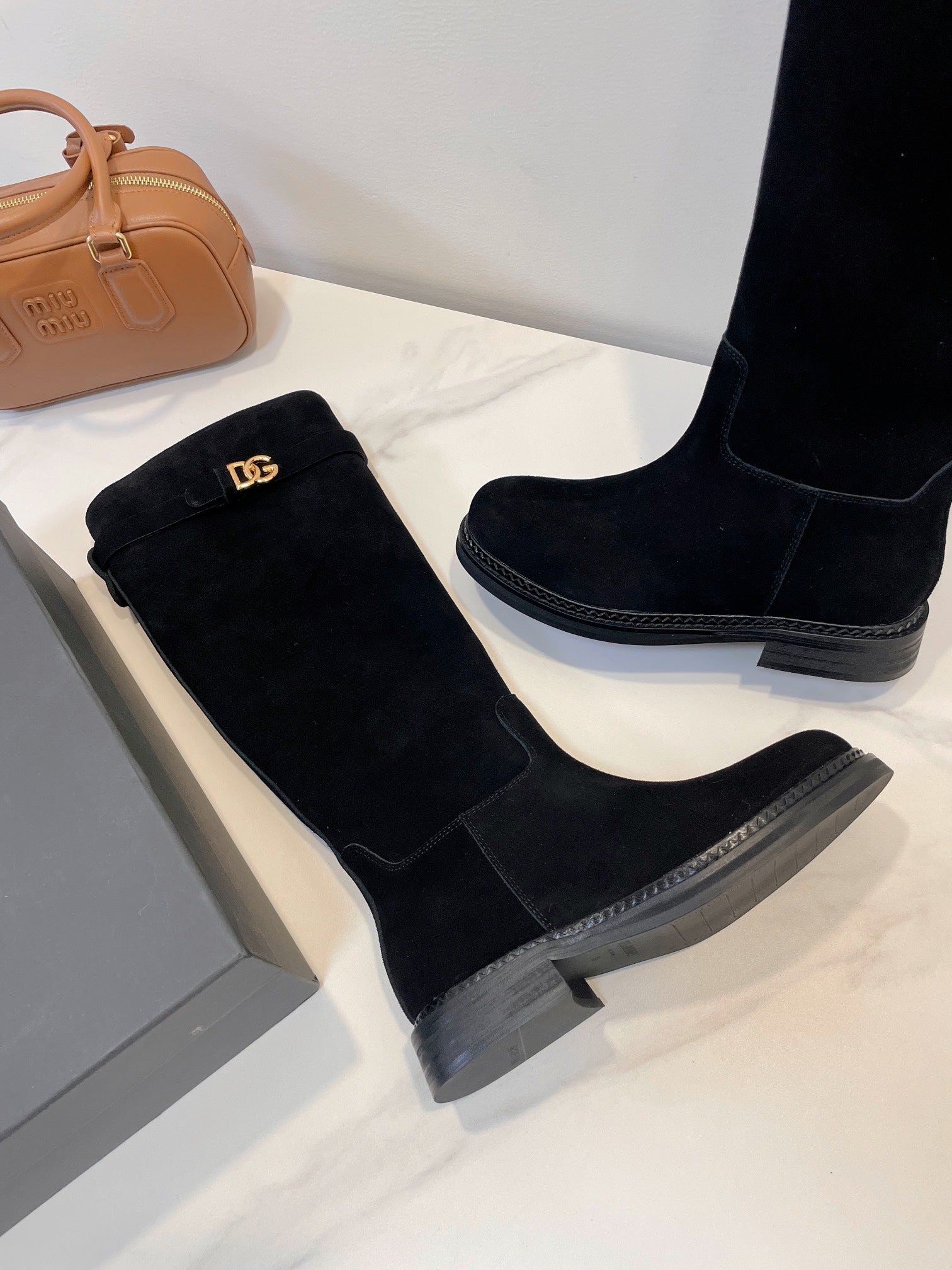 DC 24 Knee-High Boots Black Suede & Nubuck 999236