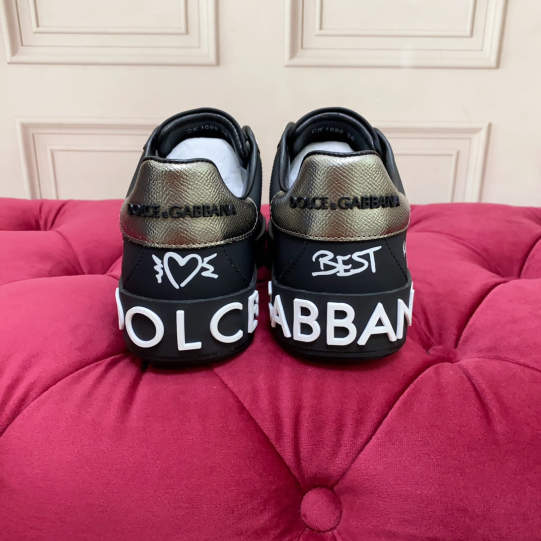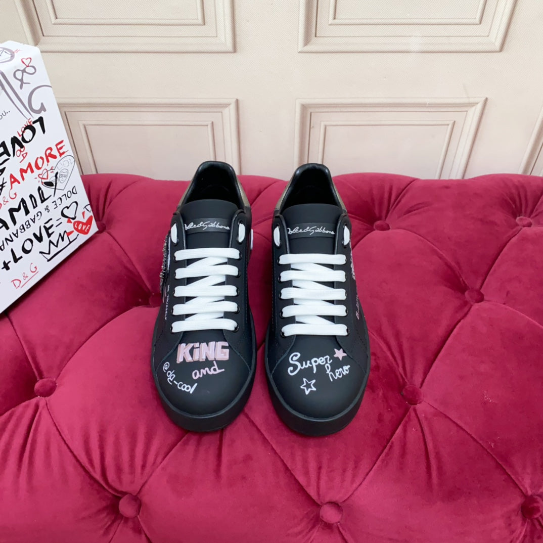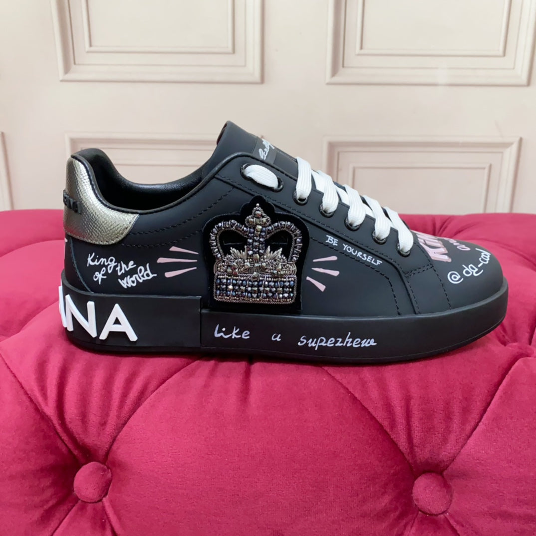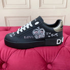 DC 24 Portofino Sneakers Black Digital-Print Sheepskin & Crown Embroidery 100859