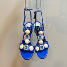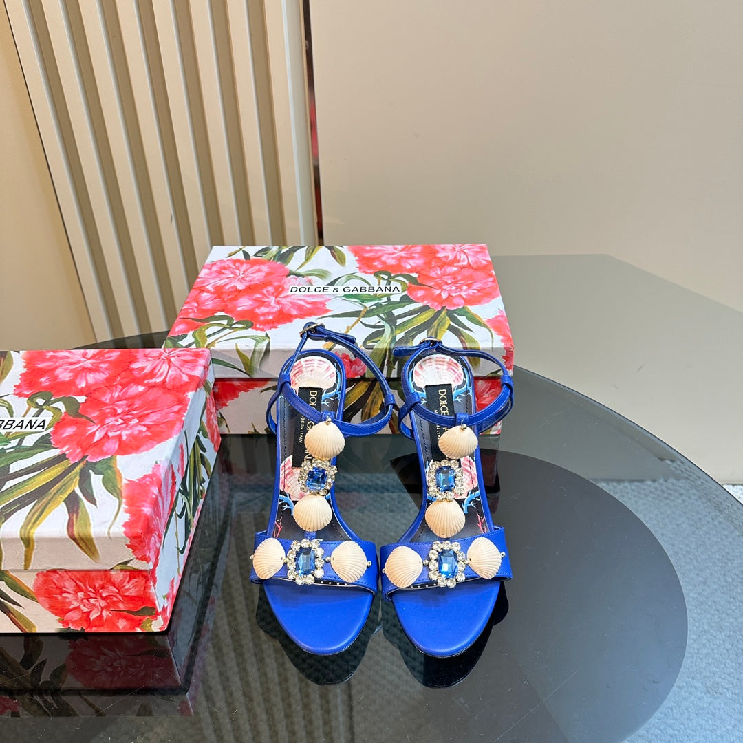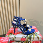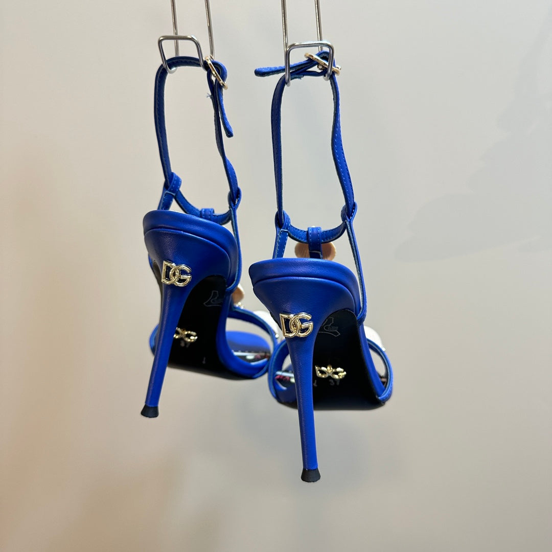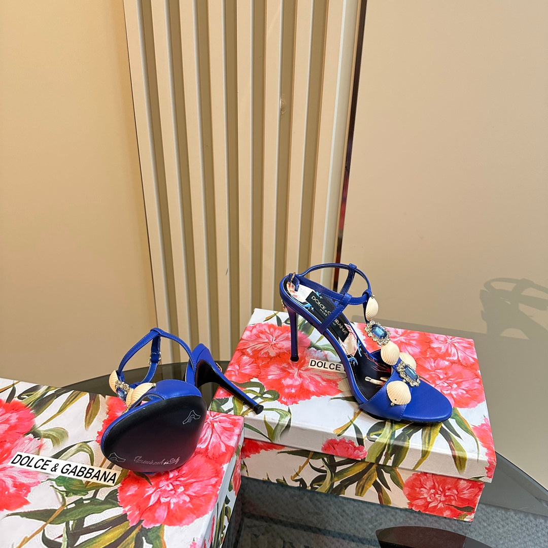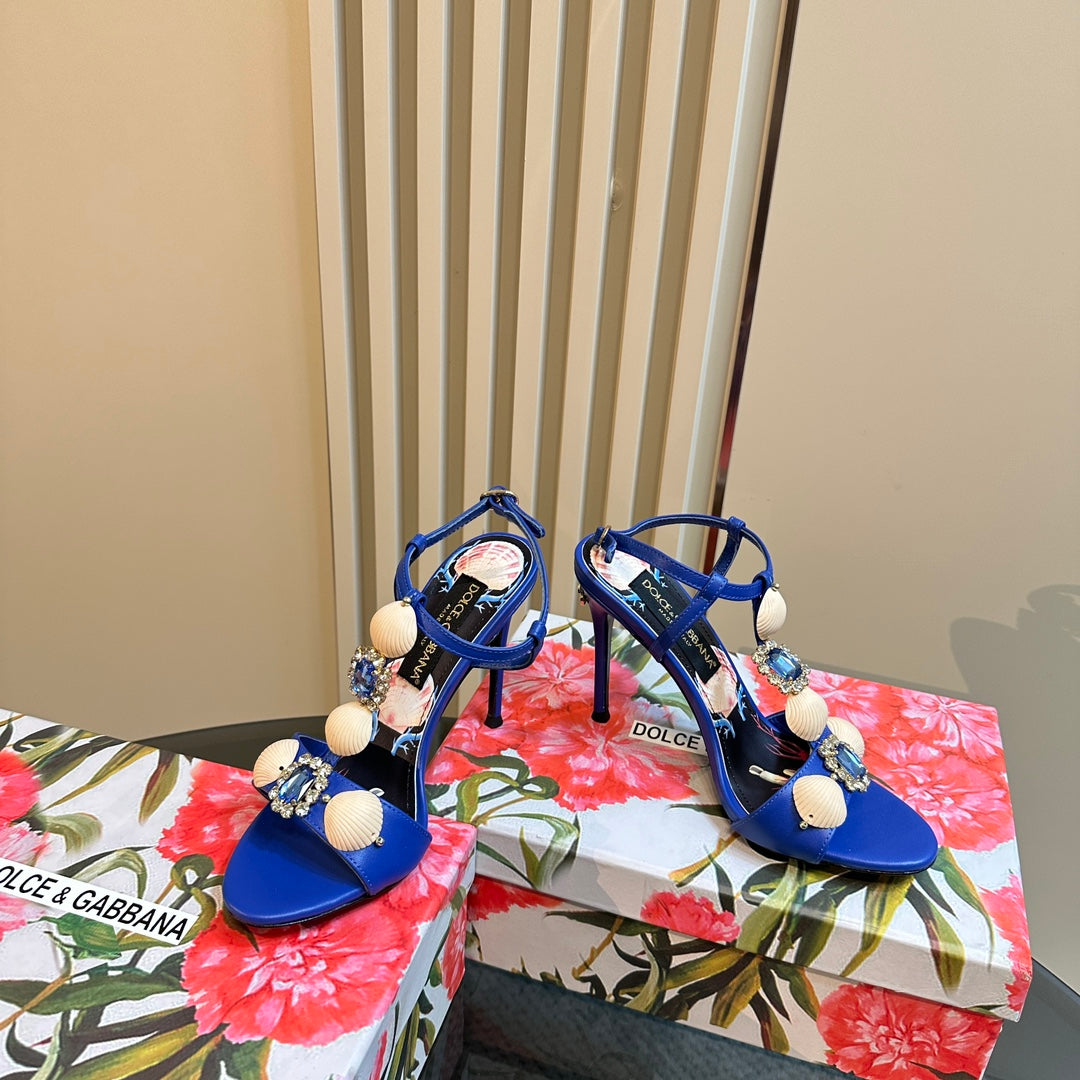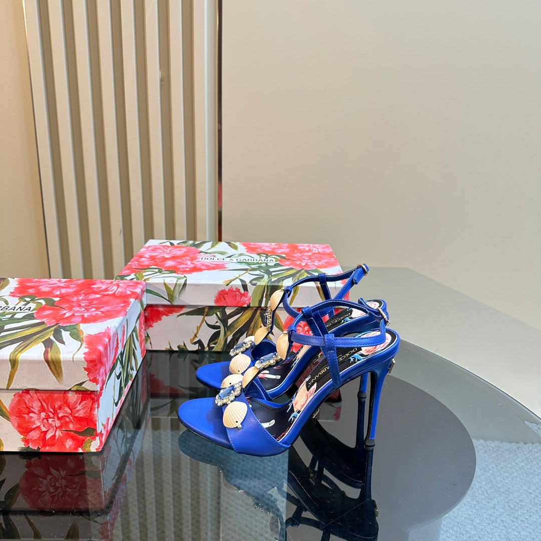 DC 24 Shell Rhinestone High Heel Sandals Blue Cowhide & Sheepskin 946159