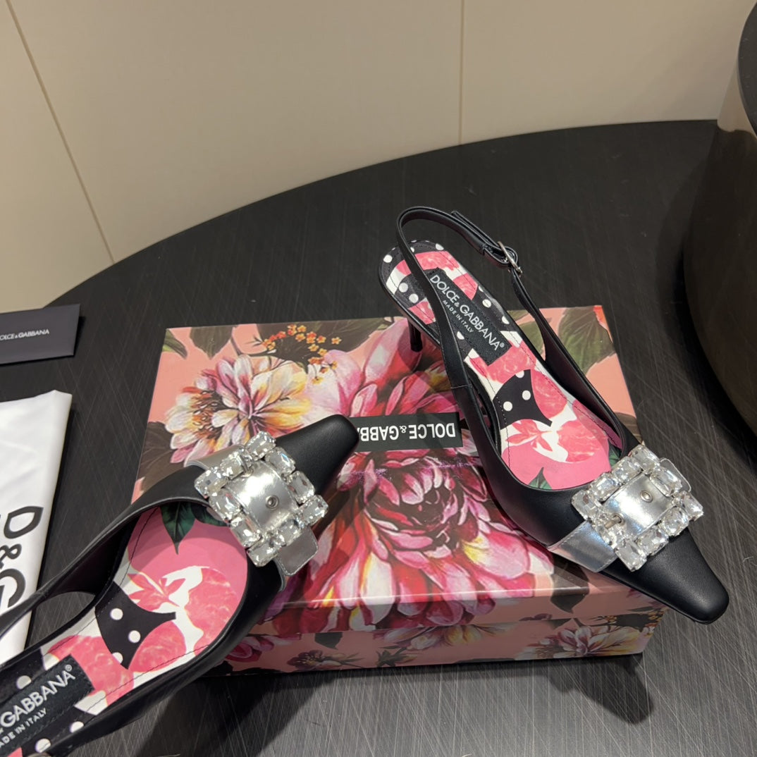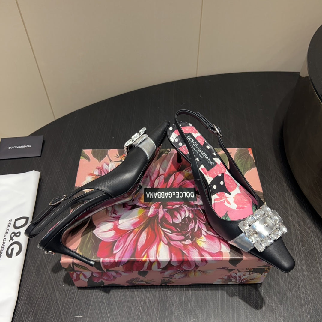DC 25 Square Diamond Buckle Slingback 65mm Black Cowhide And Sheepskin 381620