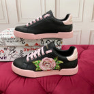 DC 25 Portofino Light Sneakers Black Pink Glitter Floral Pattern & Sheepskin 333870