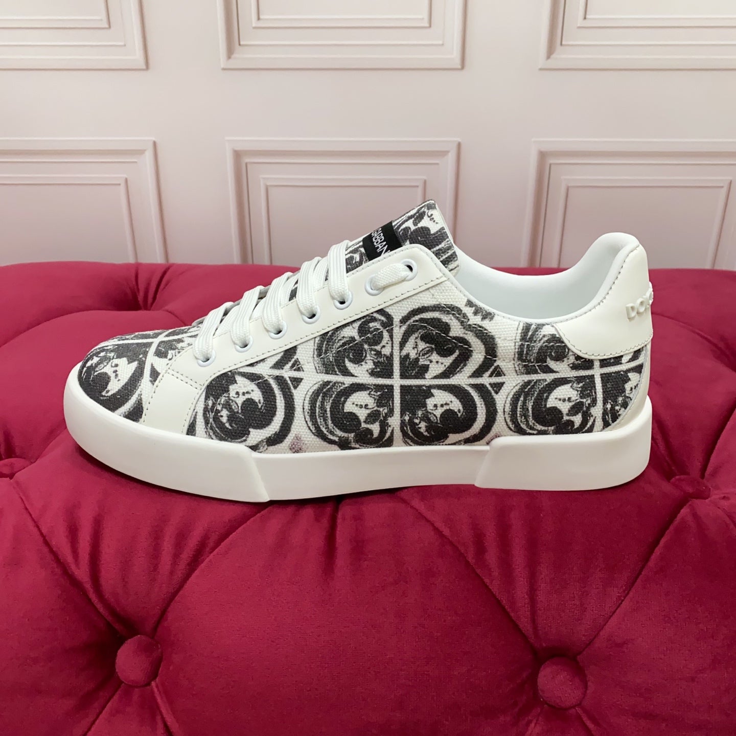 DC 25 Portofino Light Sneakers Black White Majolica-print & Sheepskin 333869