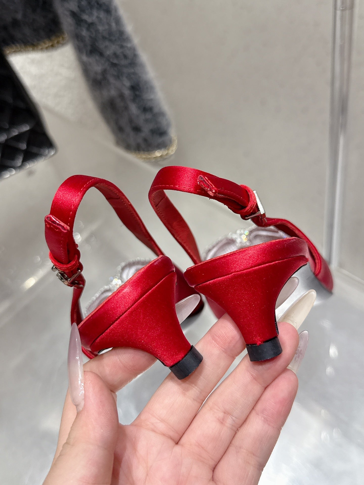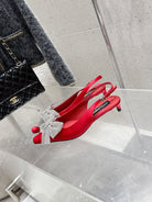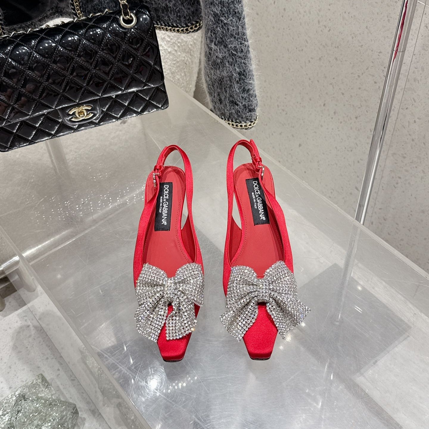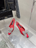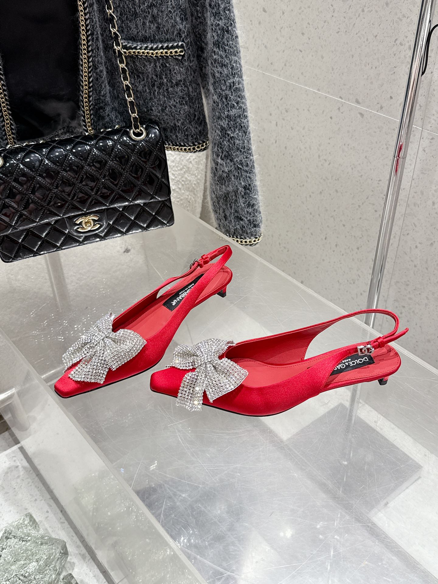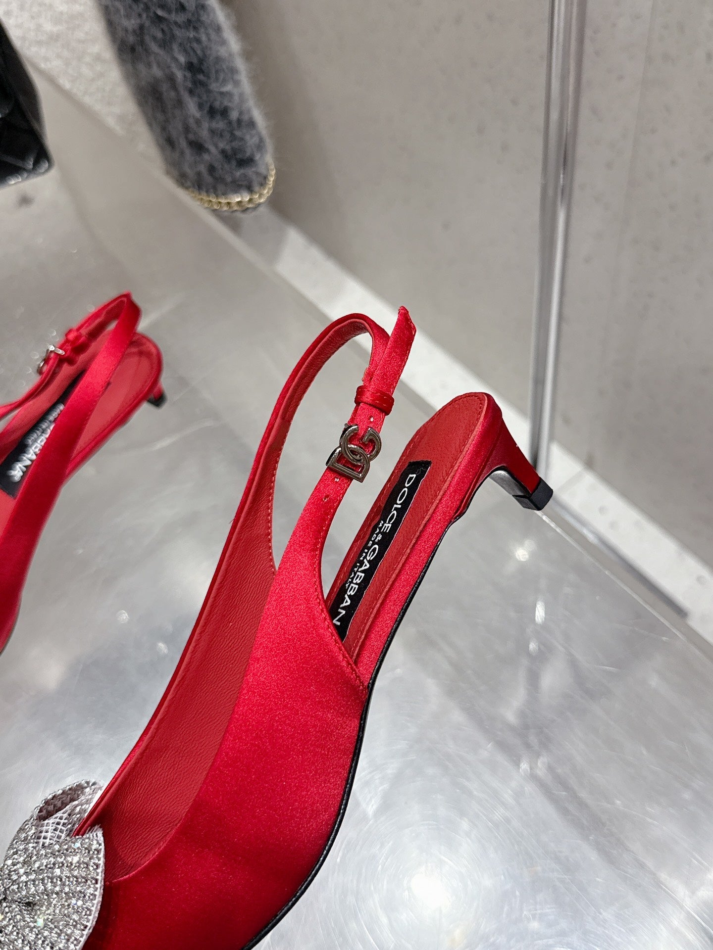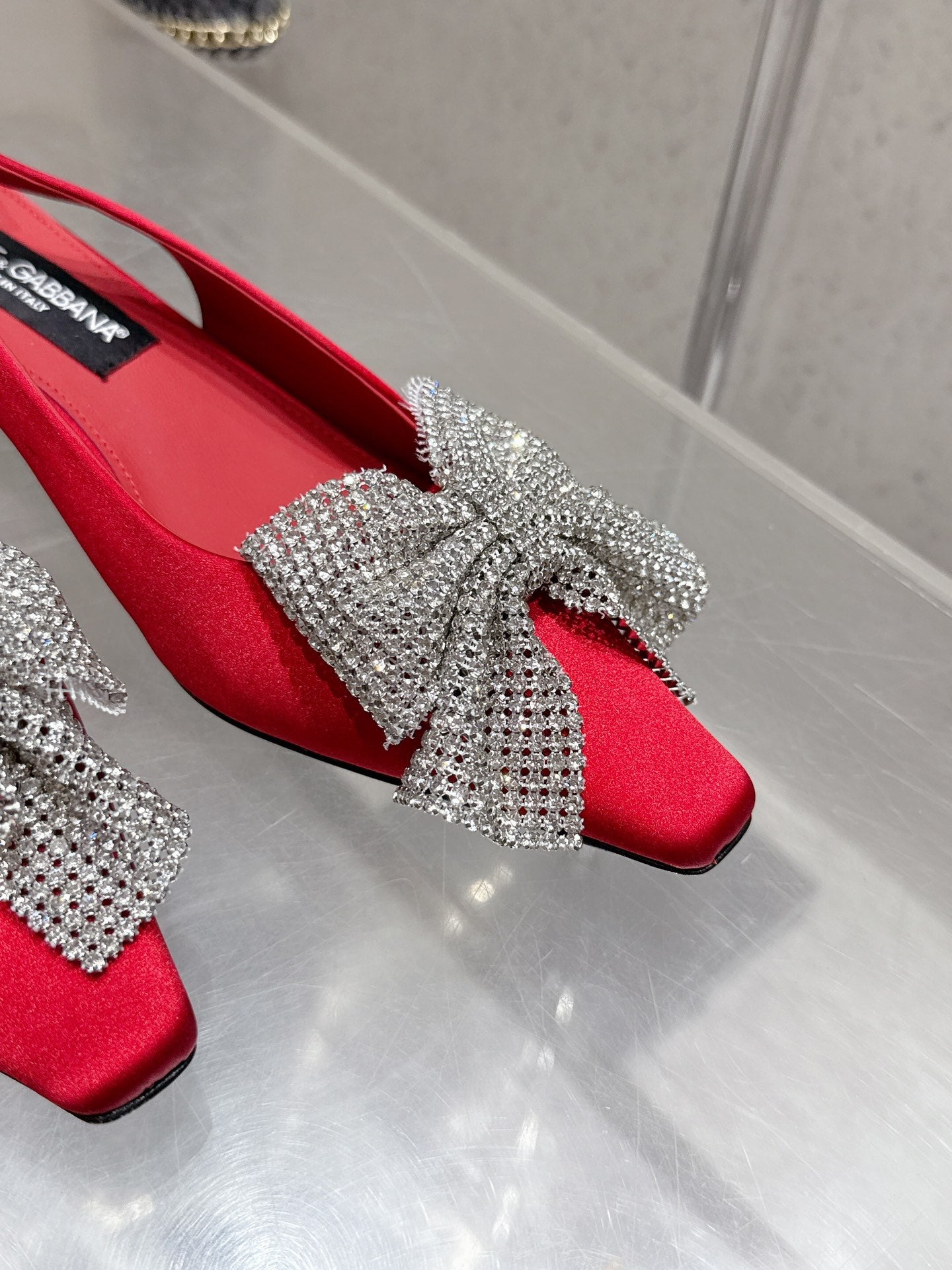 DC 25 Rhinestone Bow Slingback Pumps 40mm Red Silk & Sheepskin Sheepskin 359512