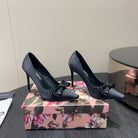 DC 25 Toe Bow High Heel Shoes 100mm Black Silk And Sheepskin 381609