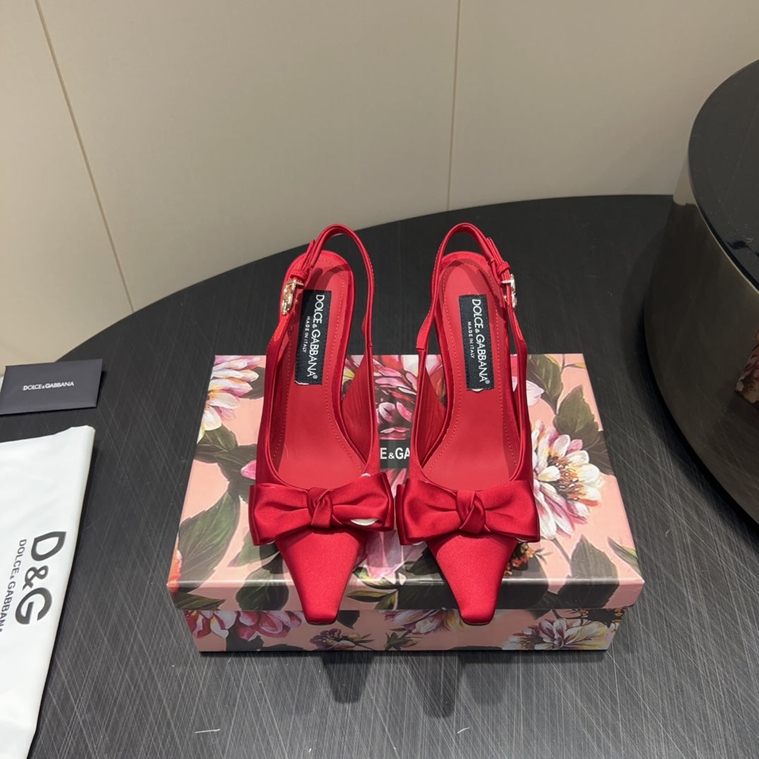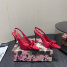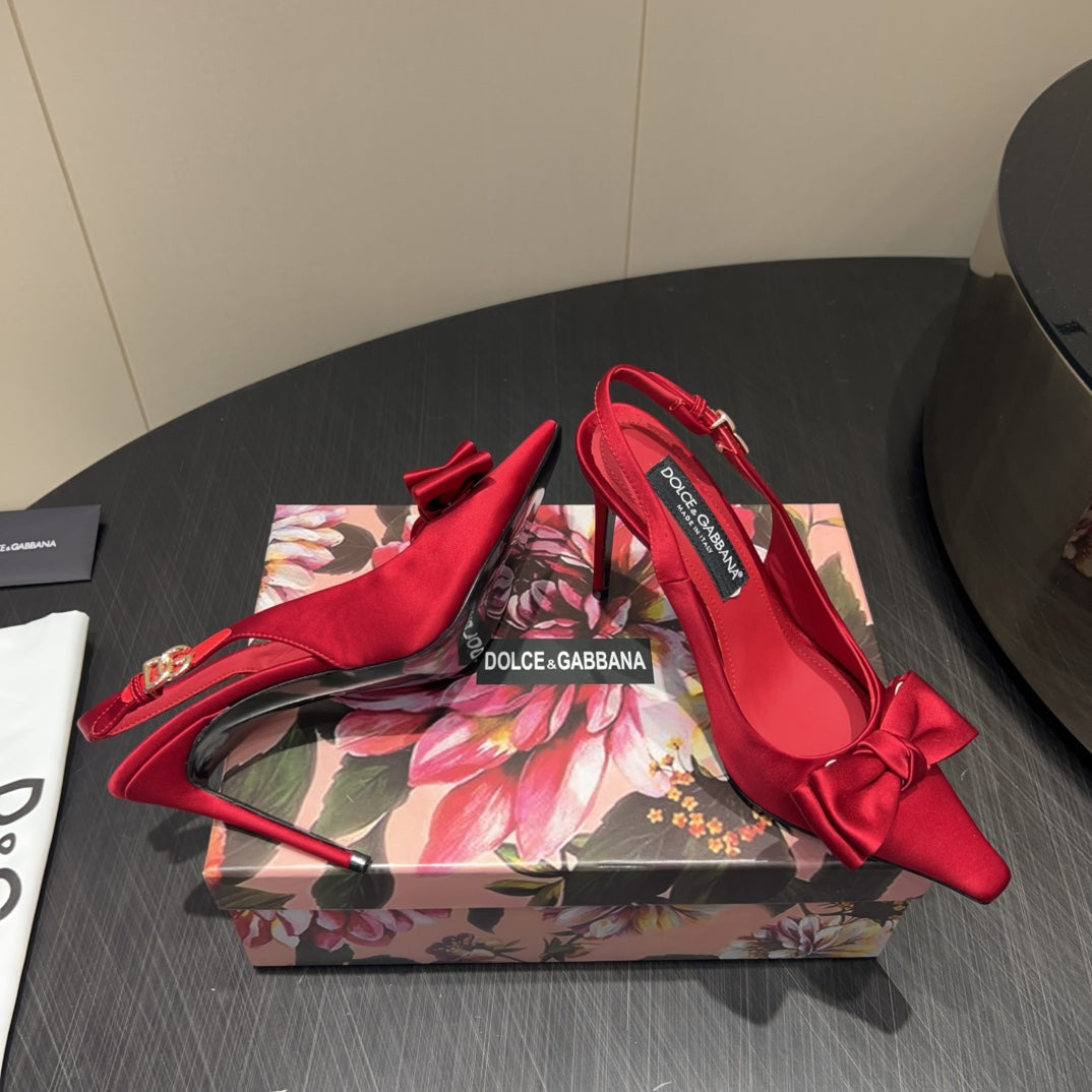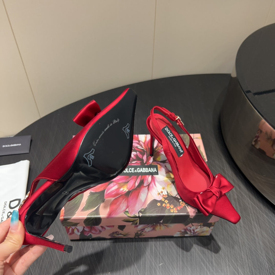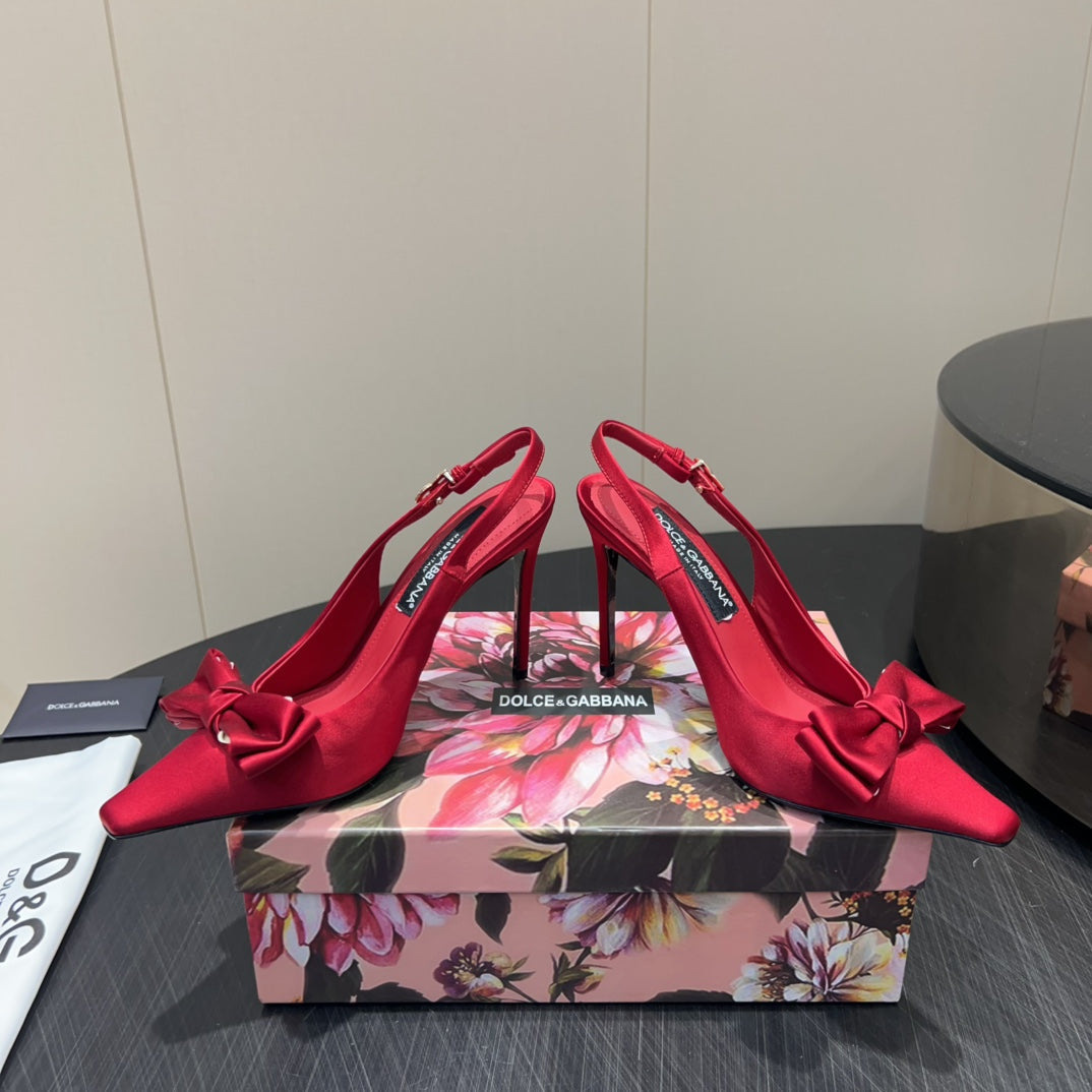 DC 25 Toe Bow High Heel Shoes 100mm Red Silk And Sheepskin 381613