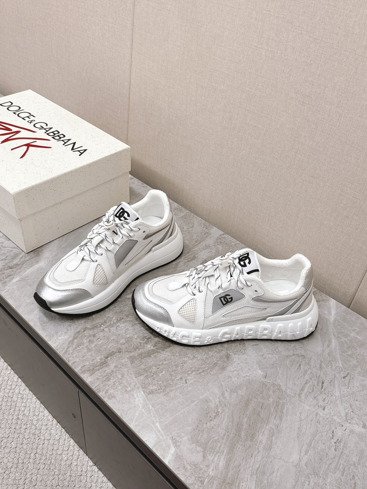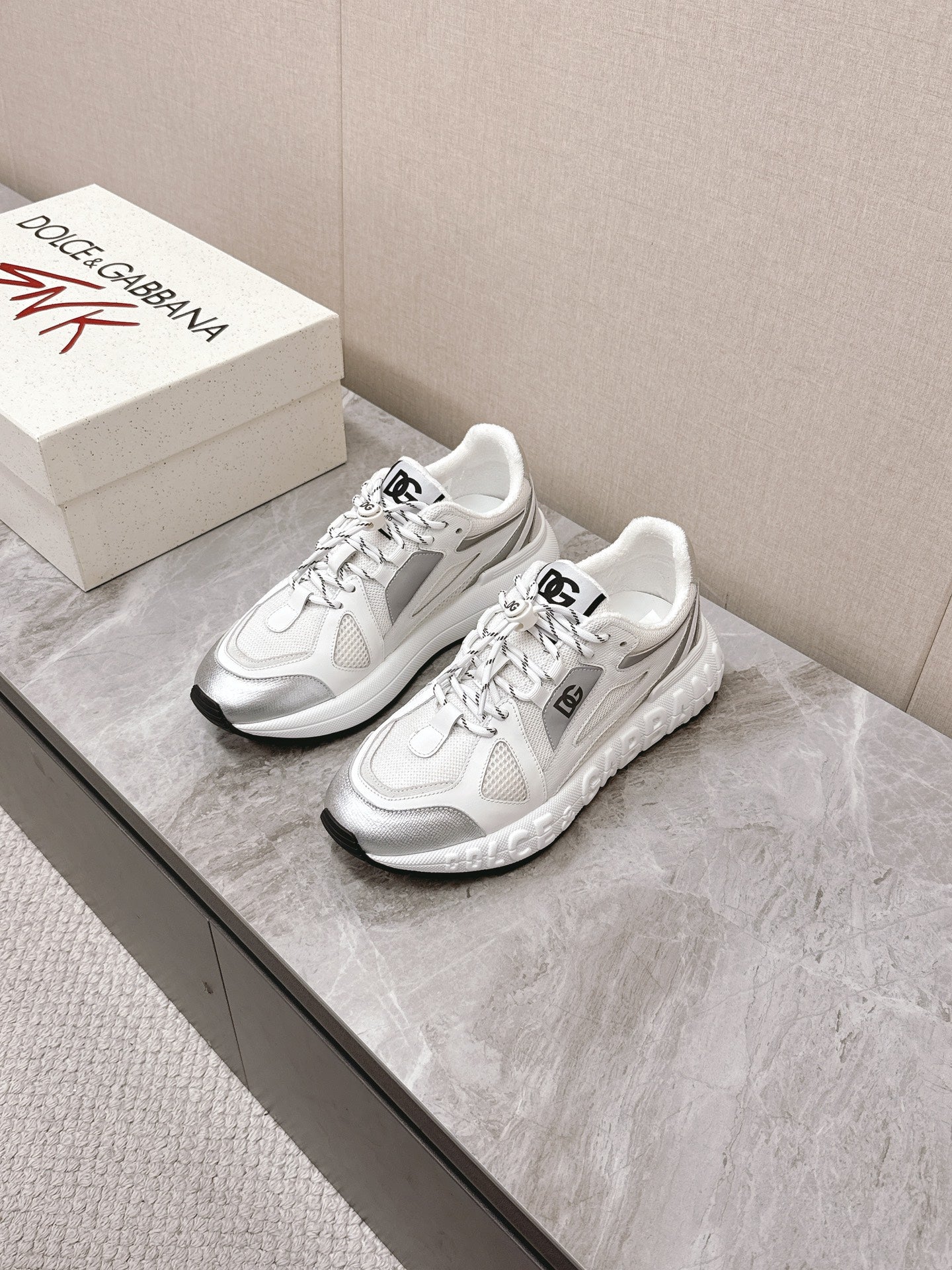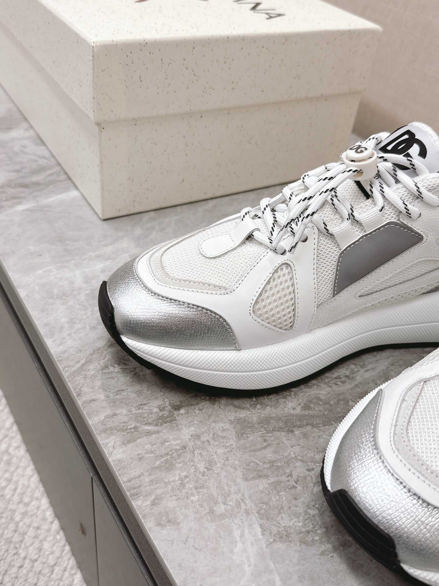 DC Chunky Sneakers White Silver Cowhide & Mesh Lining 339129