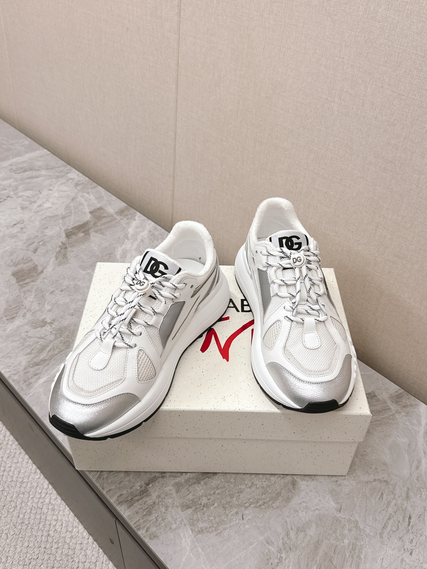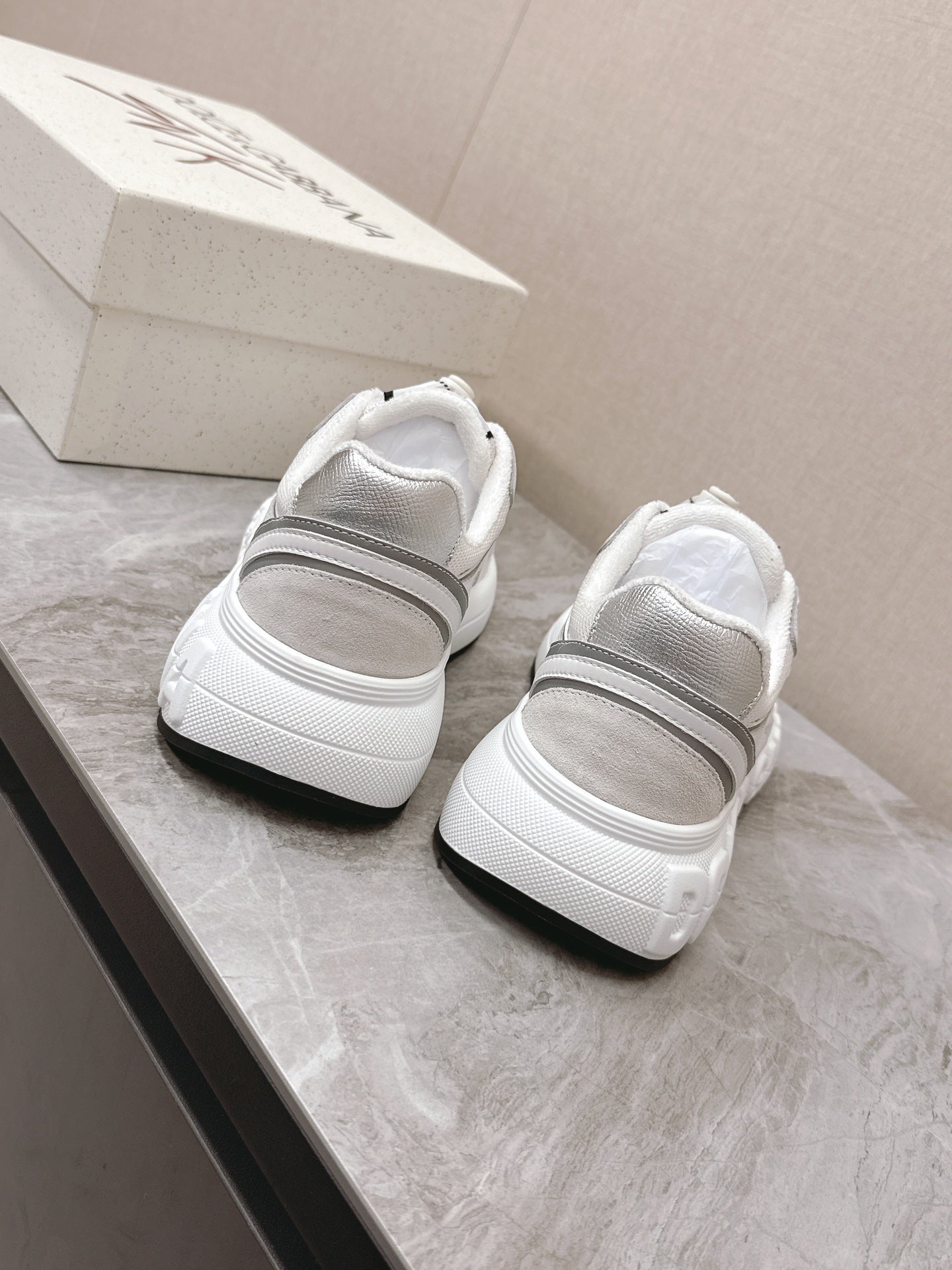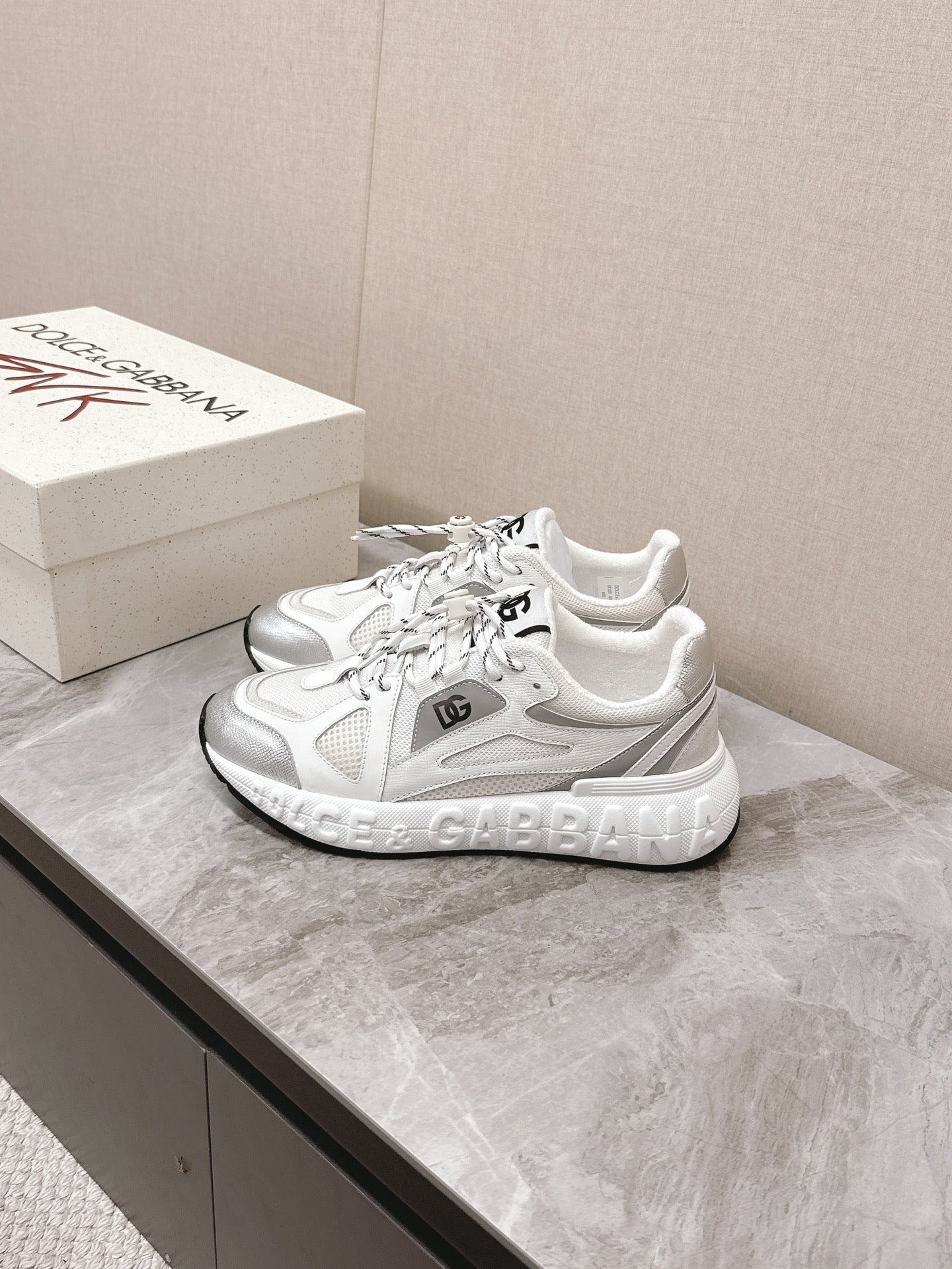 DC Chunky Sneakers White Silver Cowhide & Mesh Lining 339129