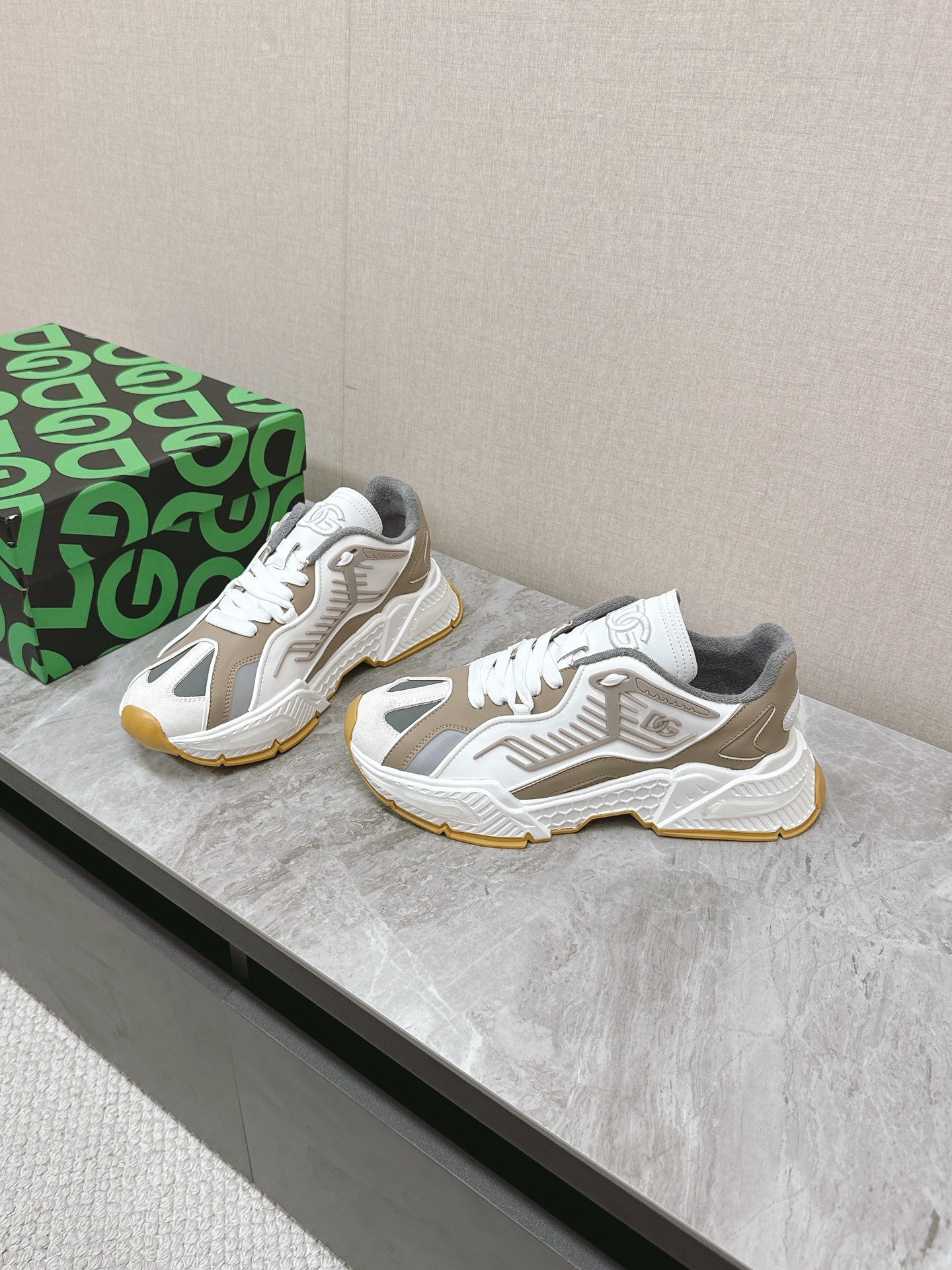 - Color: Muted Brown, White
