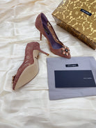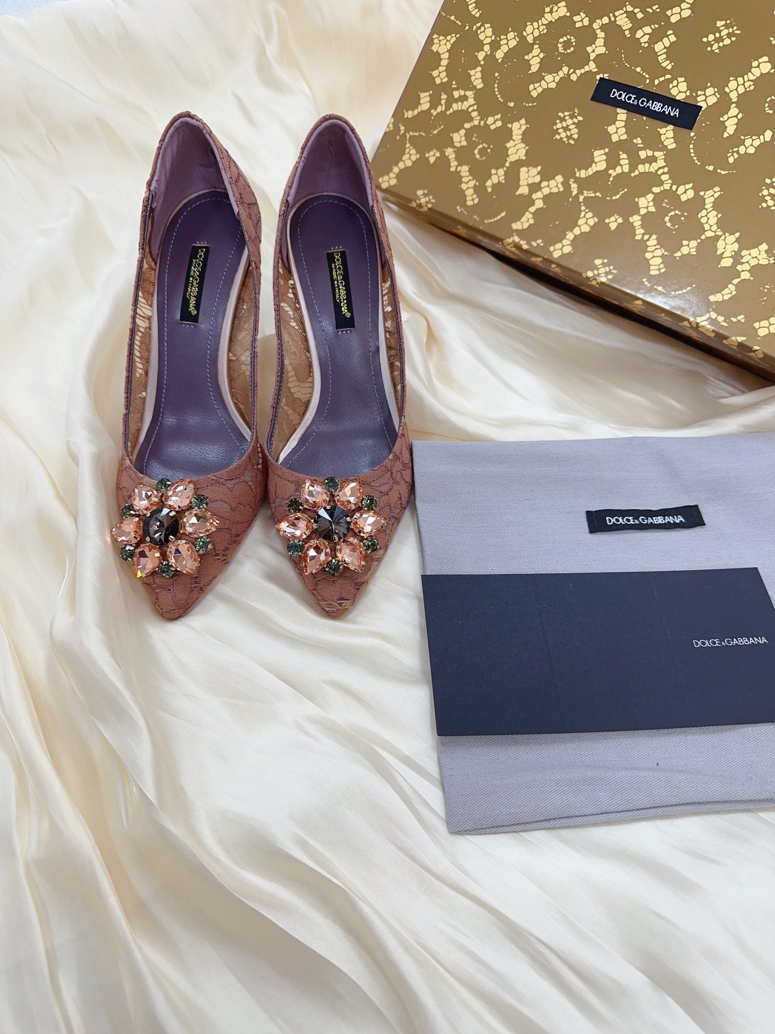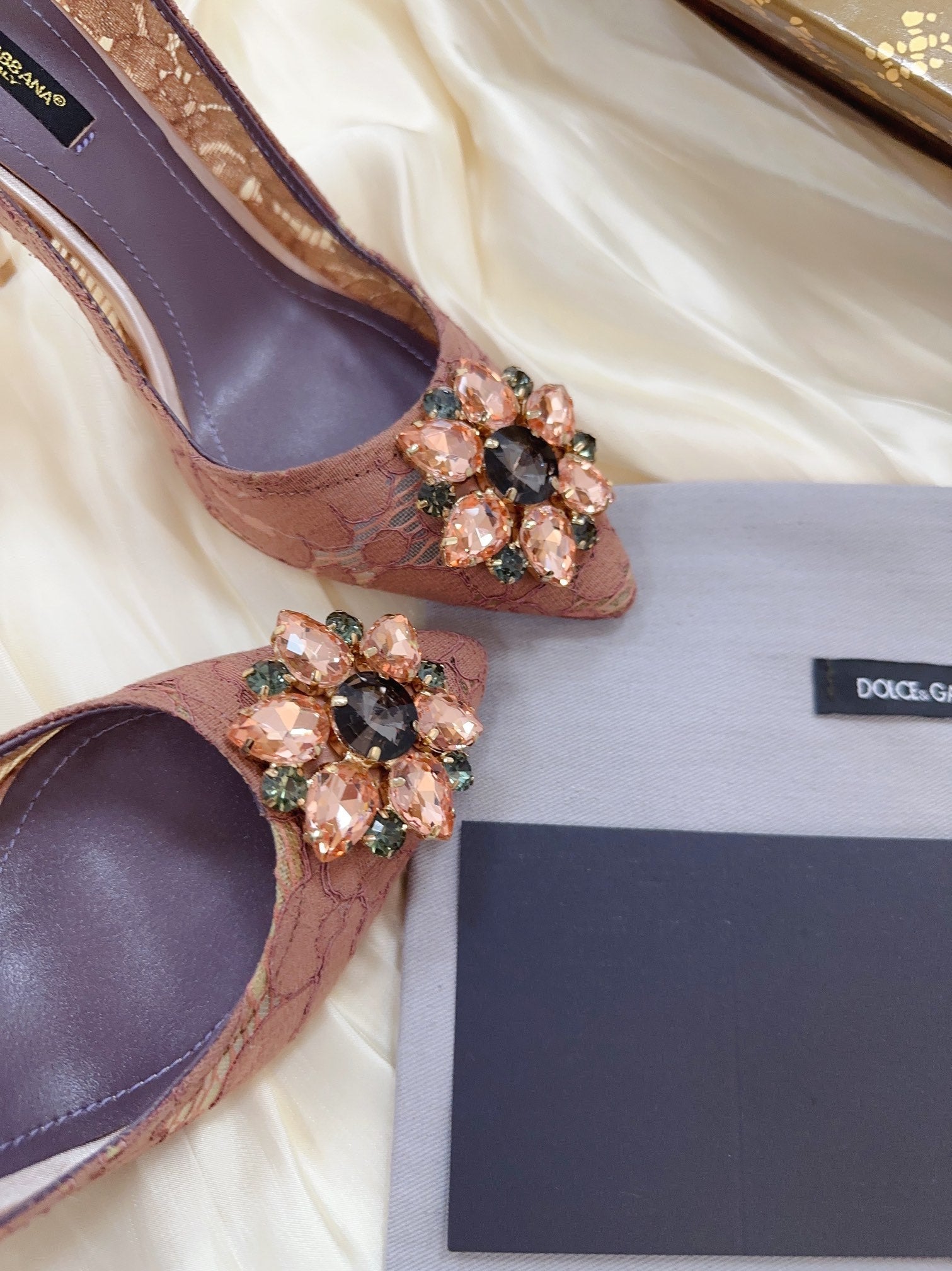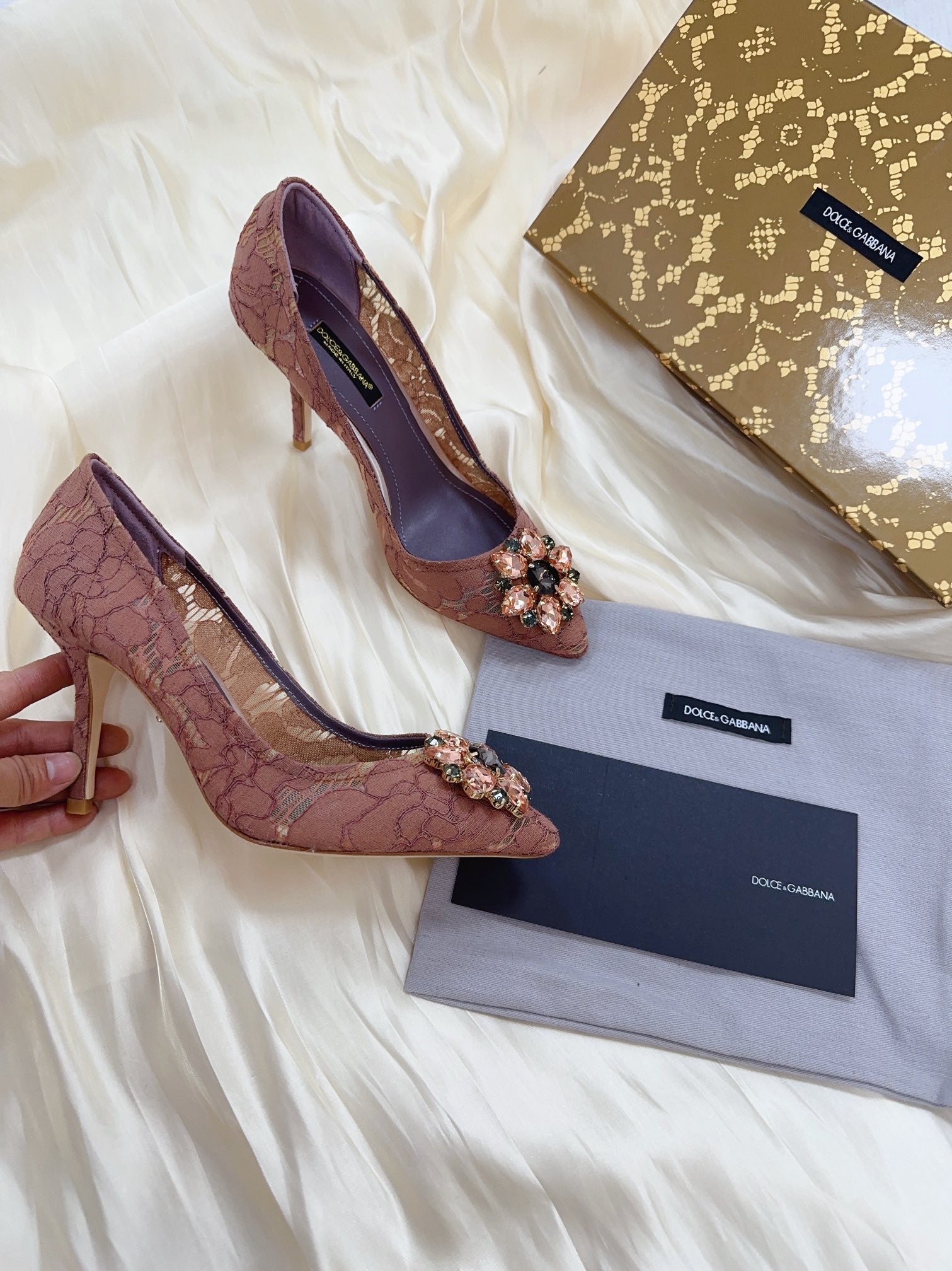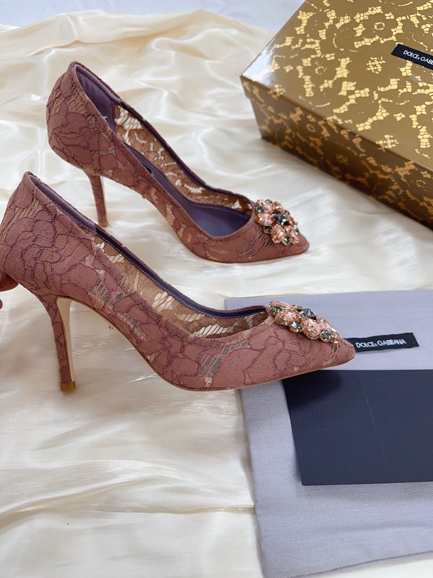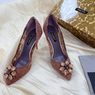 DC Floral Crystal Pumps Muted Red-Brown Genuine Leather & Lace 324773