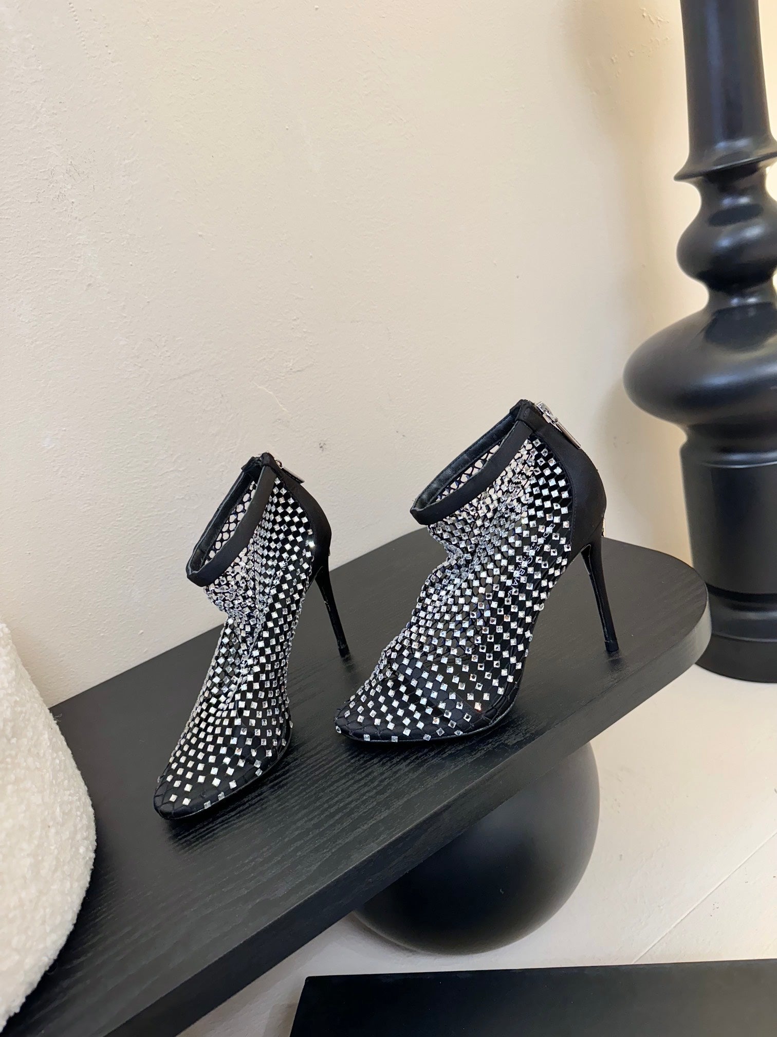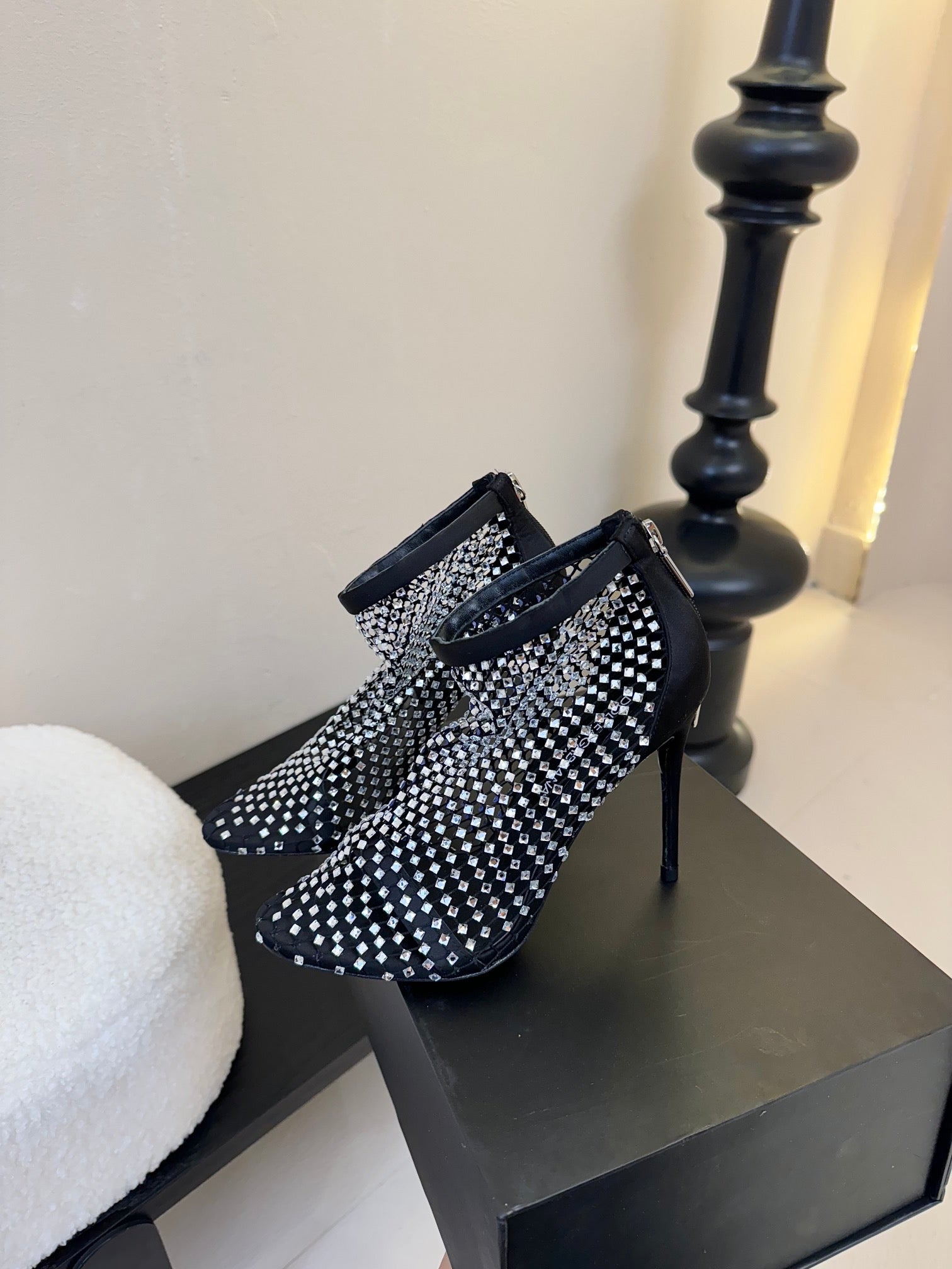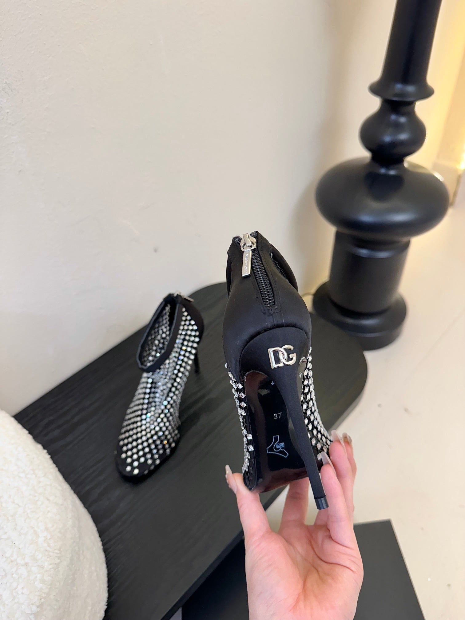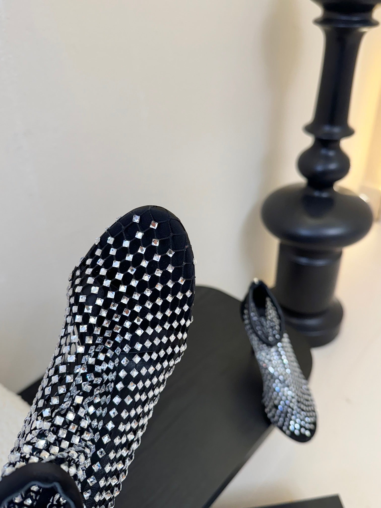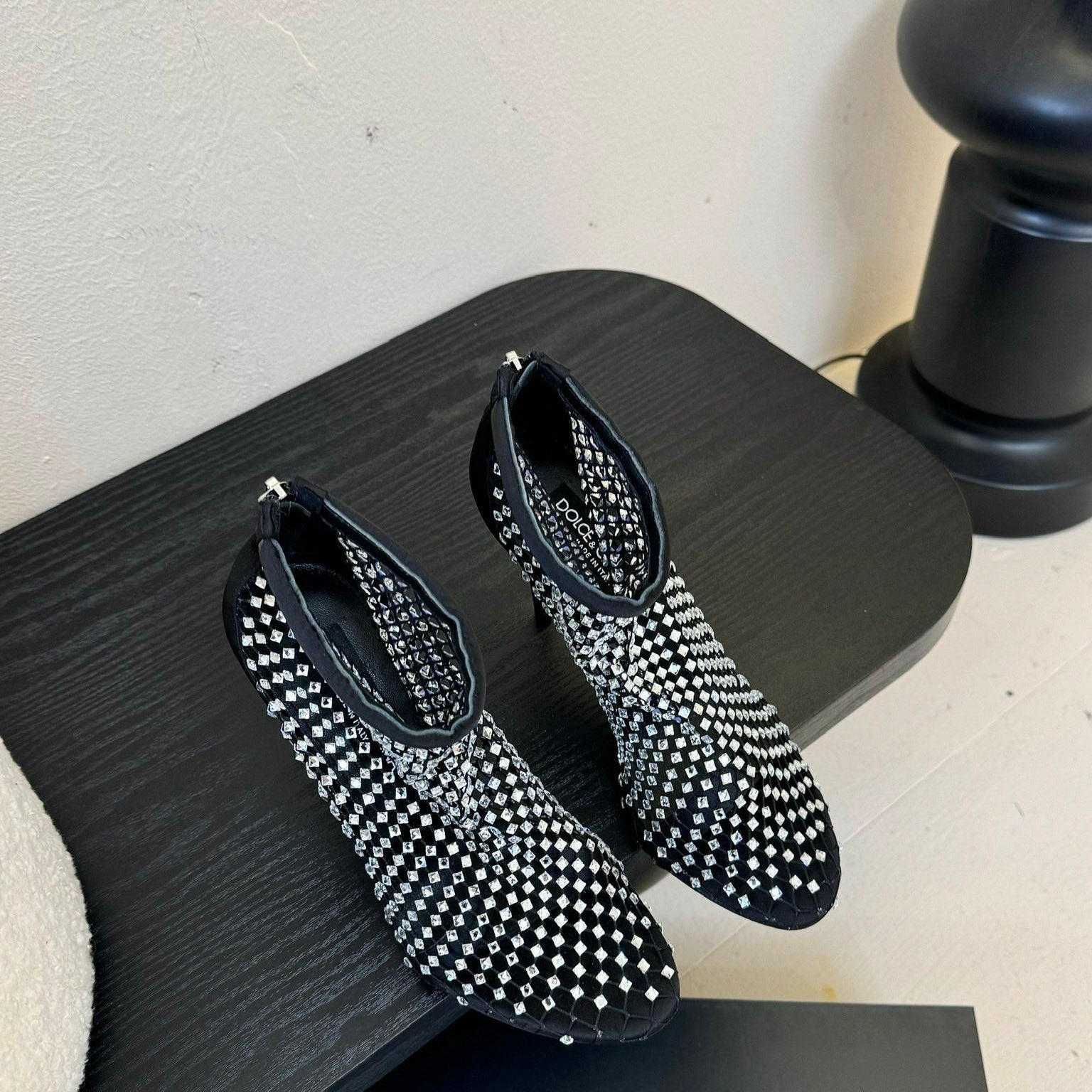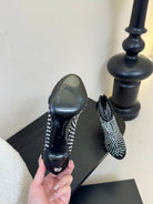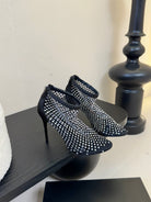 DC Pumps Black White Rhinestone Mesh & Sheepskin 297011