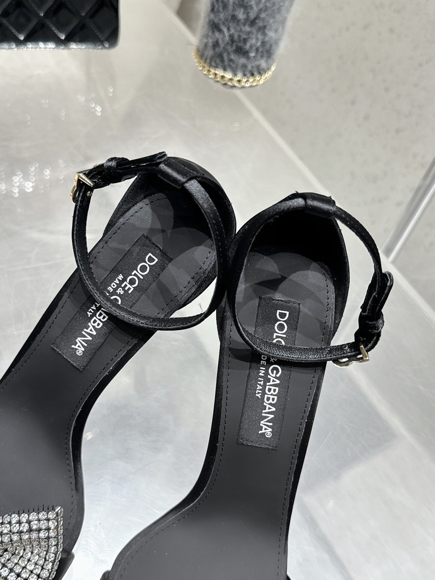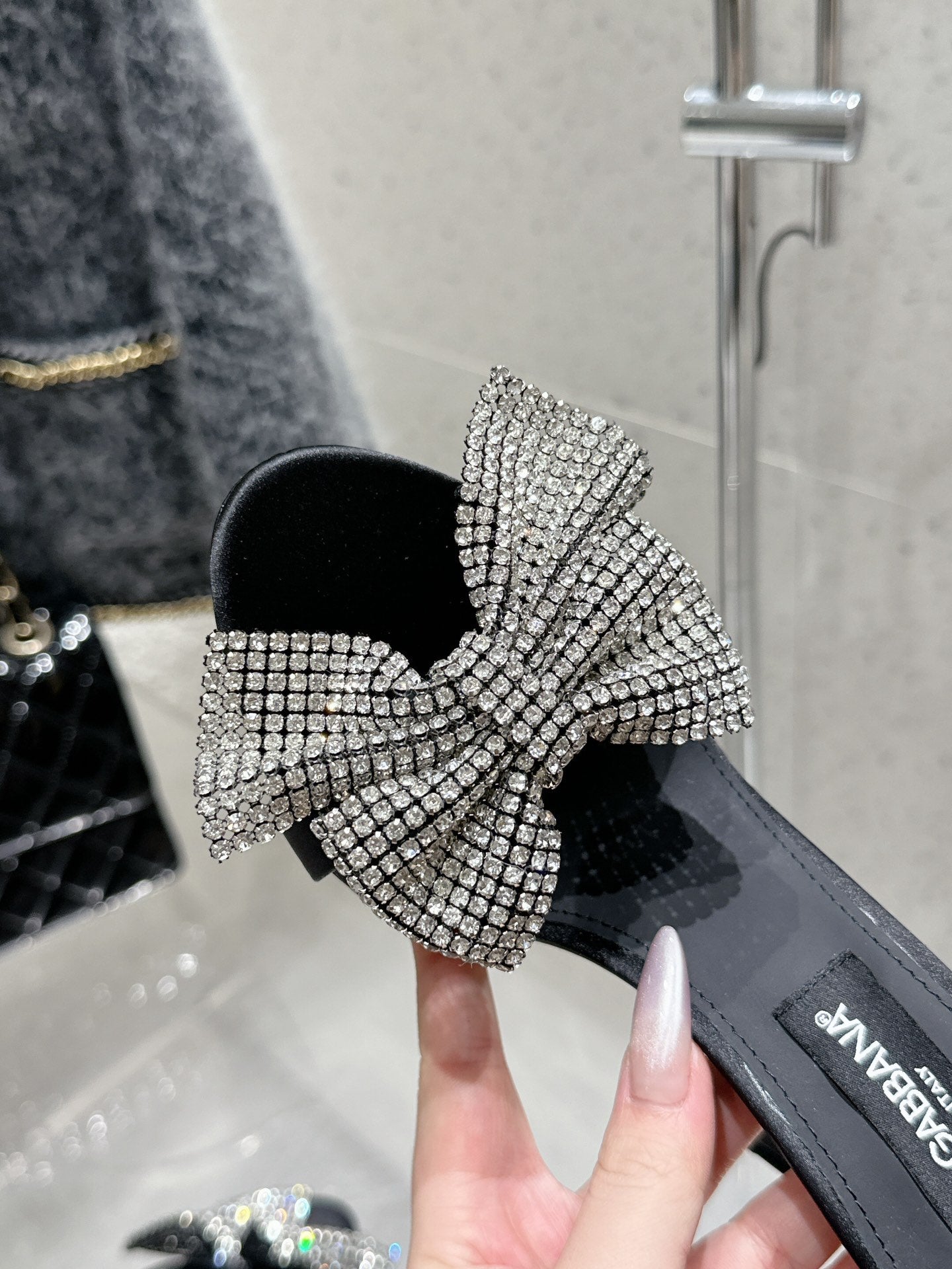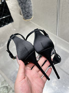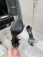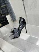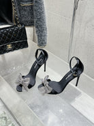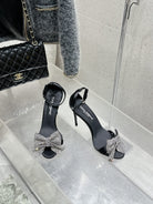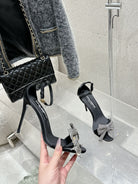 DC Rhinestone Bow Heel Sandals 105mm Black Satin & Sheepskin 359509