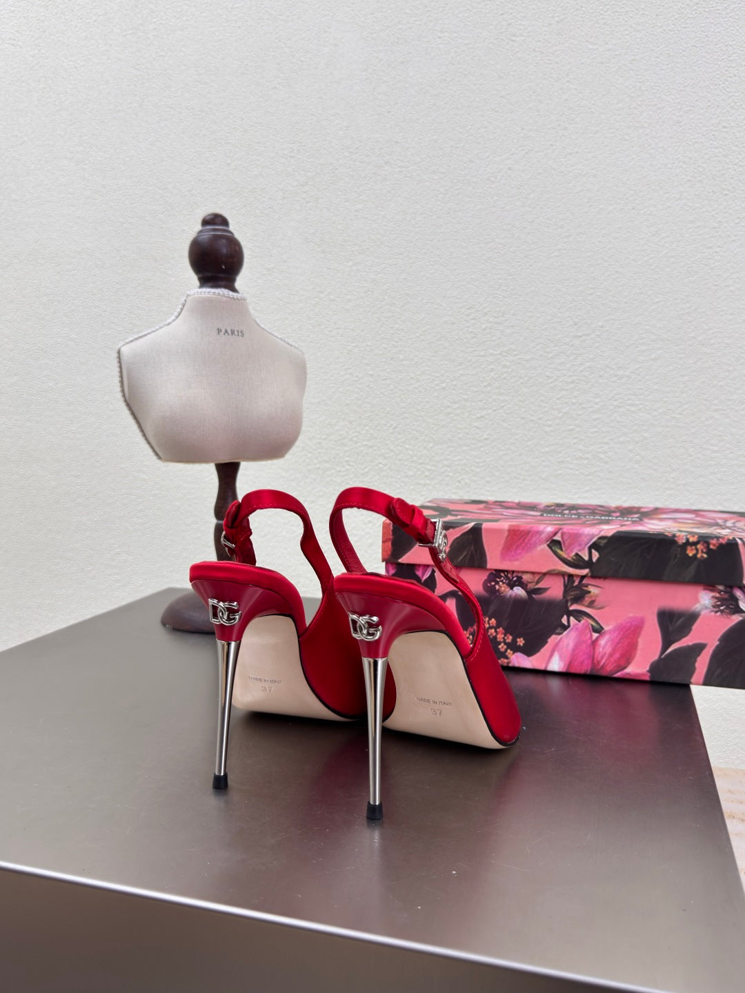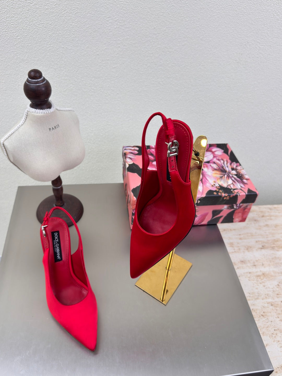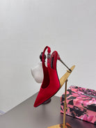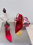 DC Slingback Pumps Red Silk & Sheepskin 343143