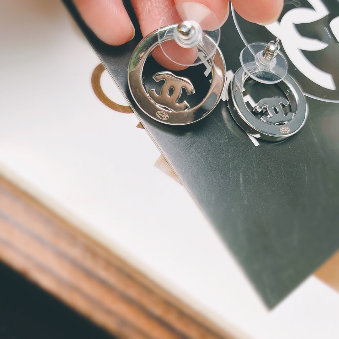 DOUBLE C SILVER DIAMOND STUD EARRINGS