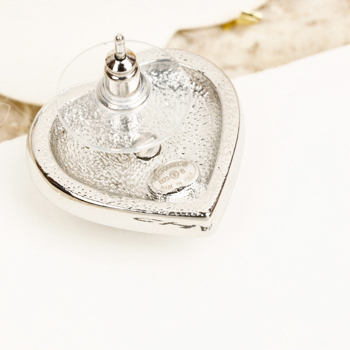 HEART CC DIAMONDS AROUND STUD SILVER EARRINGS