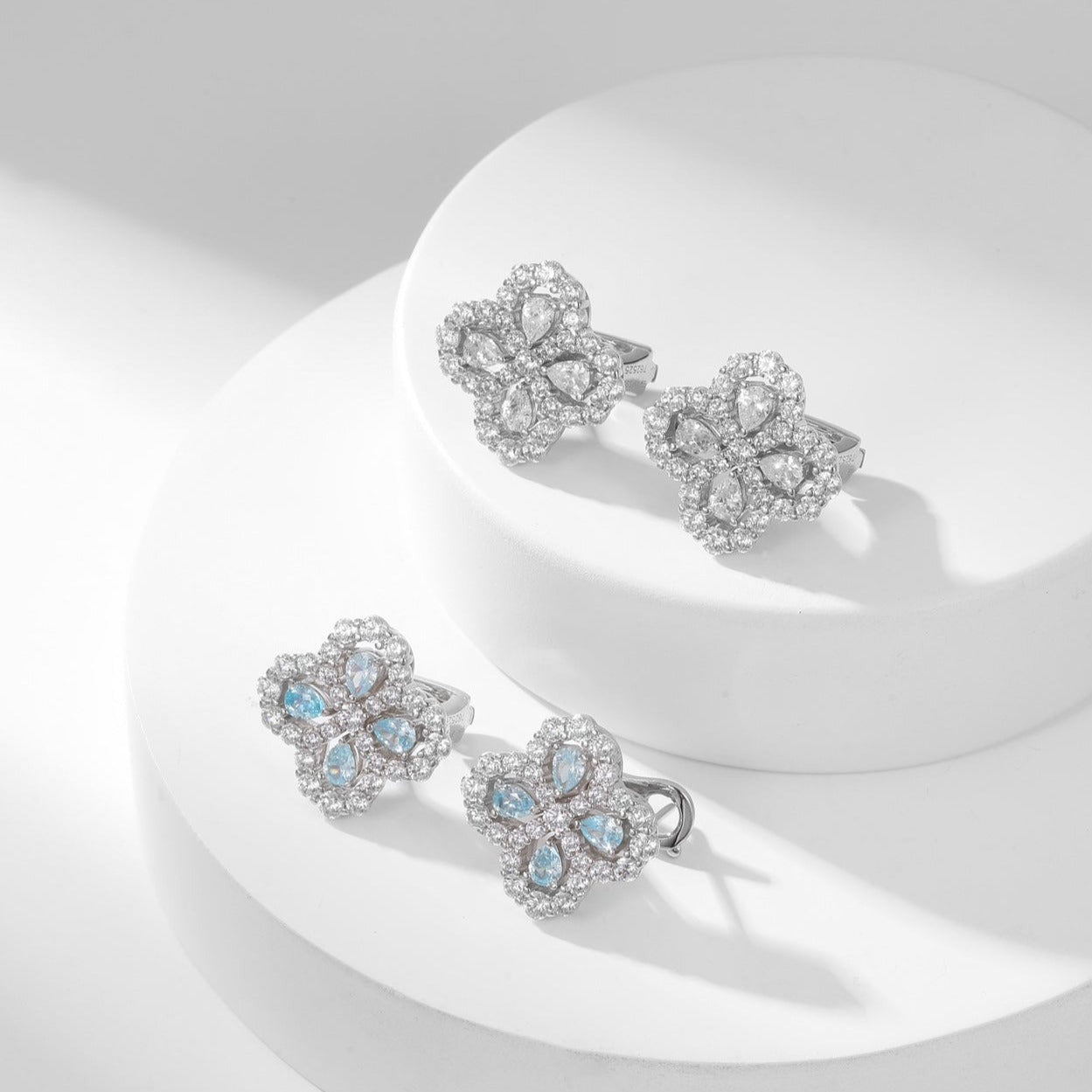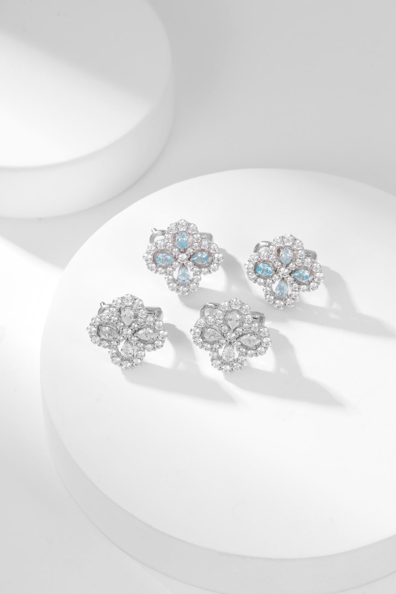 LOOP FULL DIAMOND MOTIF SILVER EARRINGS