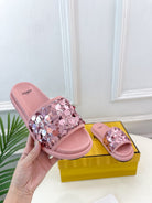 FENDI THICK SOLE 3 CM SEQUIN SLIPPER ROUGH PINK