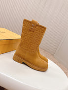 Fendi 25 Short Boots Caramel Yellow Suede 500936