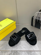 FENDI BAGUETTE SLIDE SLIPPERS IN BLACK WOOL