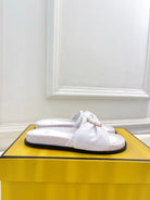 FENDI FLAT SLIPPER IN WHITE JACQUARD FABRIC WITH GOLD HARDWARE