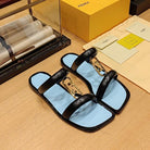 FENDI O'LOCK SLIDES BLACK AND LIGHT BLUE CALFSKIN WITH GOLD HARDWARE