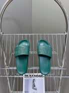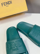 FENDI ROMA SLIDES IN TEAL GREEN LAMBSKIN LEATHER