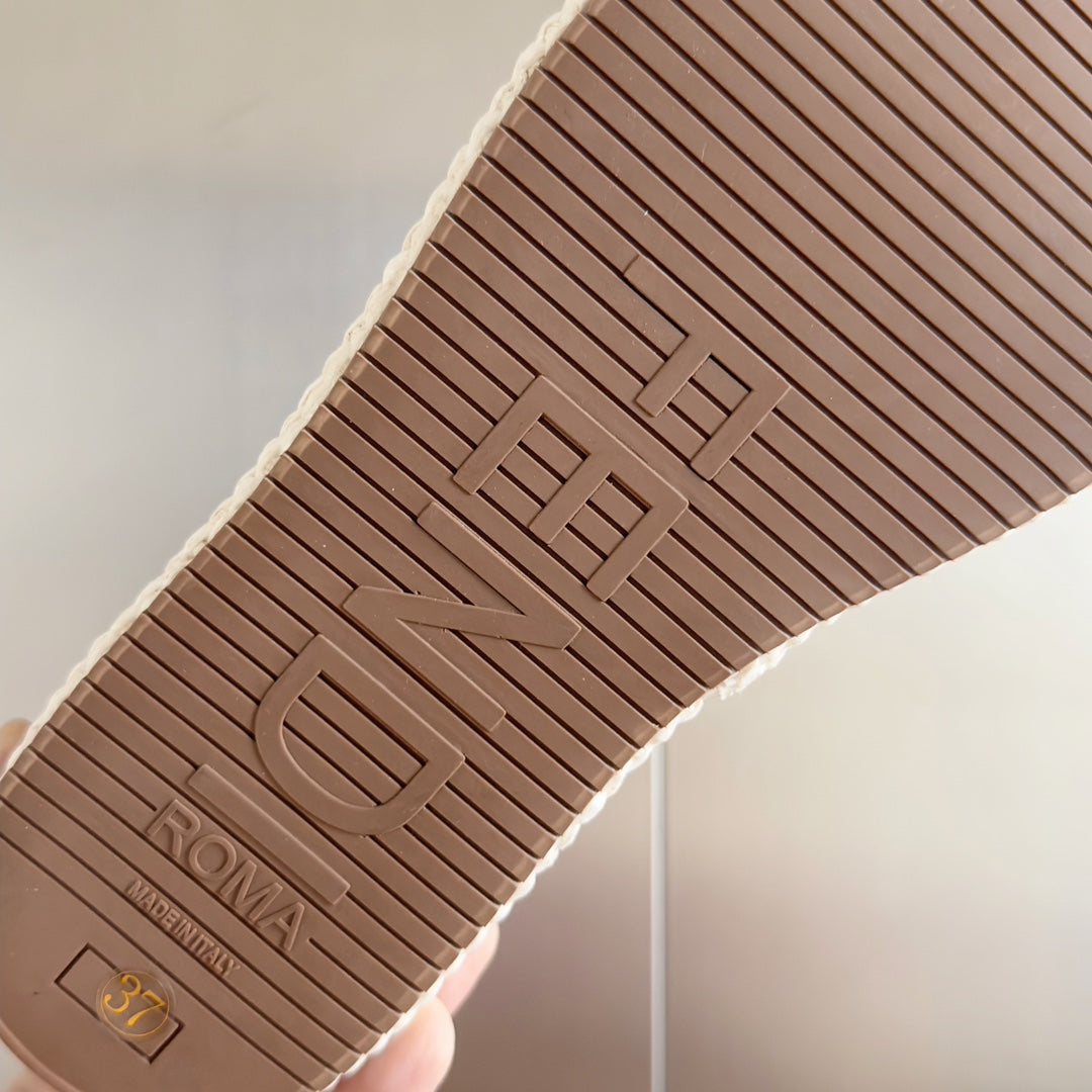 FF Sunshine 65 White Cotton Brown Leather Fibre Flatform Slide