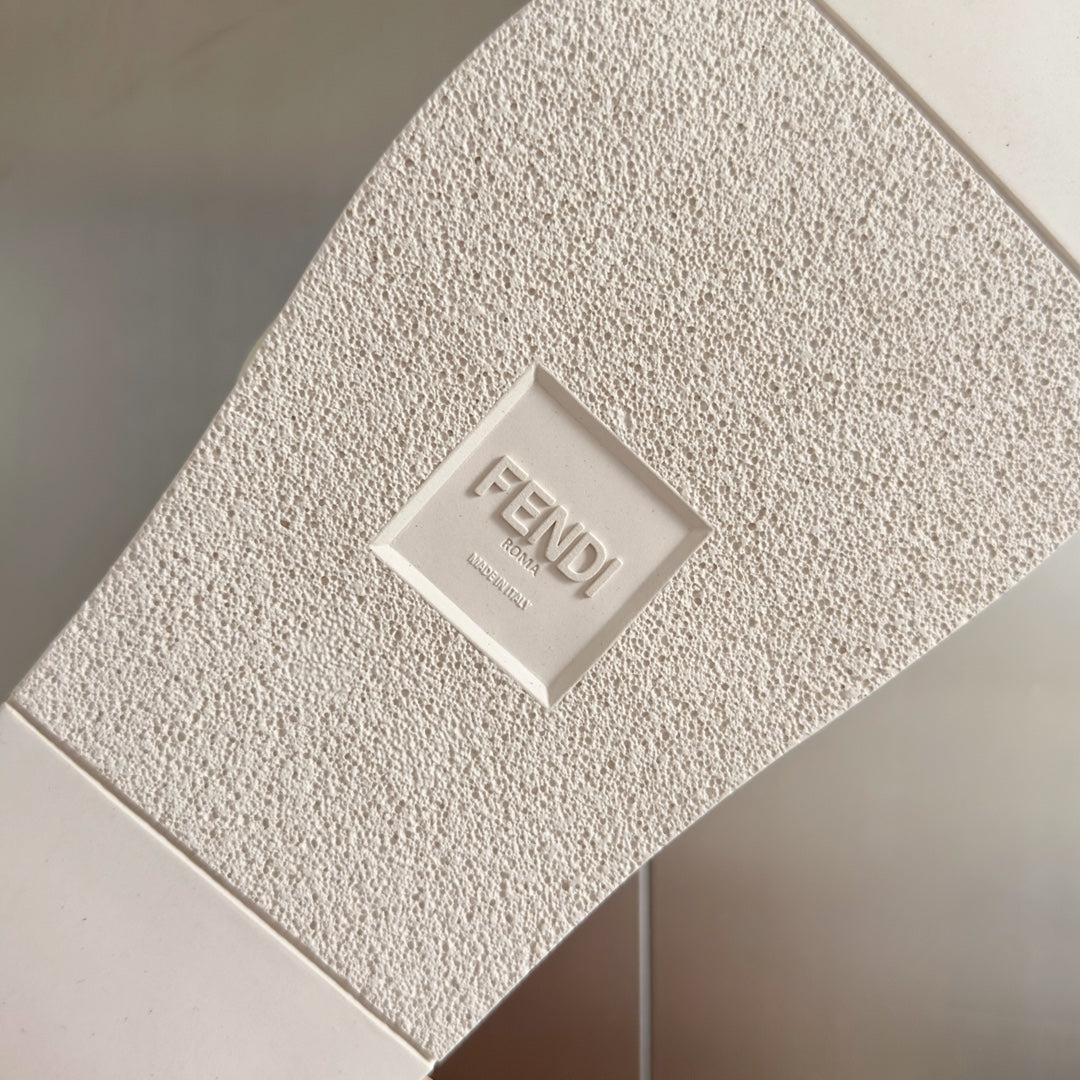 FENDI GRAPHY LOGO LETTERING SLIDES IN WHITE LAMBSKIN WITH GOLD HARDWARE