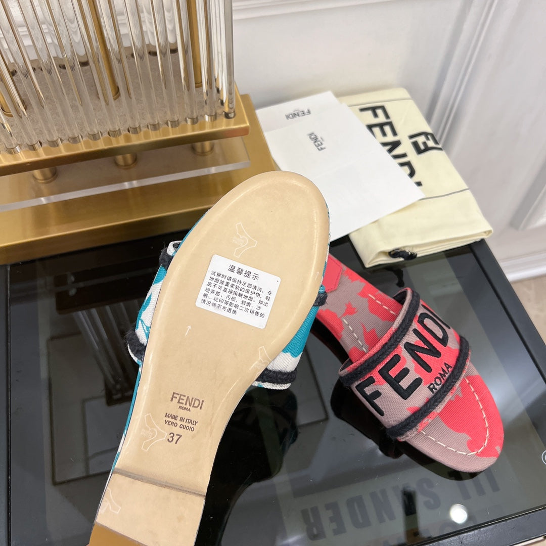 FENDI FLORAL SLIDES IN BLUE MIX WHITE FABRIC