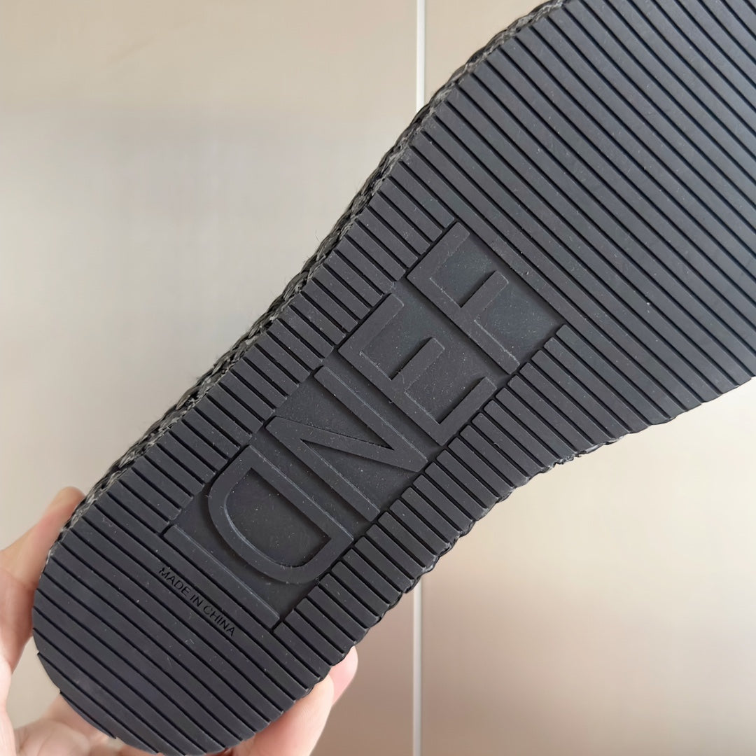 FENDI SIGNATURE WEDGE PLATFORM 6 CM IN BLACK FIBRE WITH BROWN EMBROIDERED LOGO