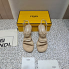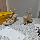FENDI CHUNKY HIGH-HEELED SANDAL IN BEIGE BISQUE CALFKIN WITH GOLD HARDWARE