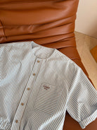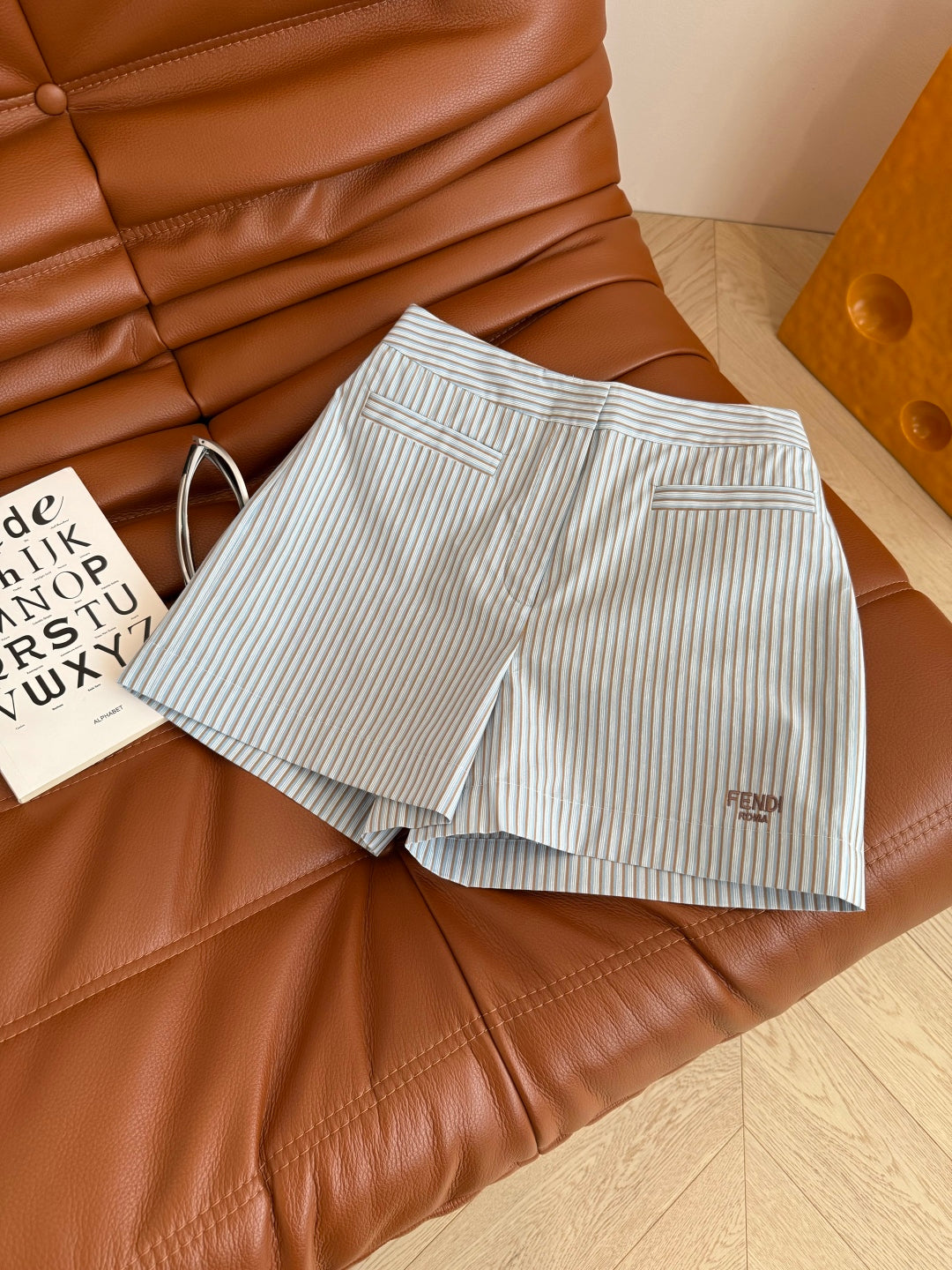 Fendi 25 Letter Logo Embroidered Striped Suit Blue Cotton