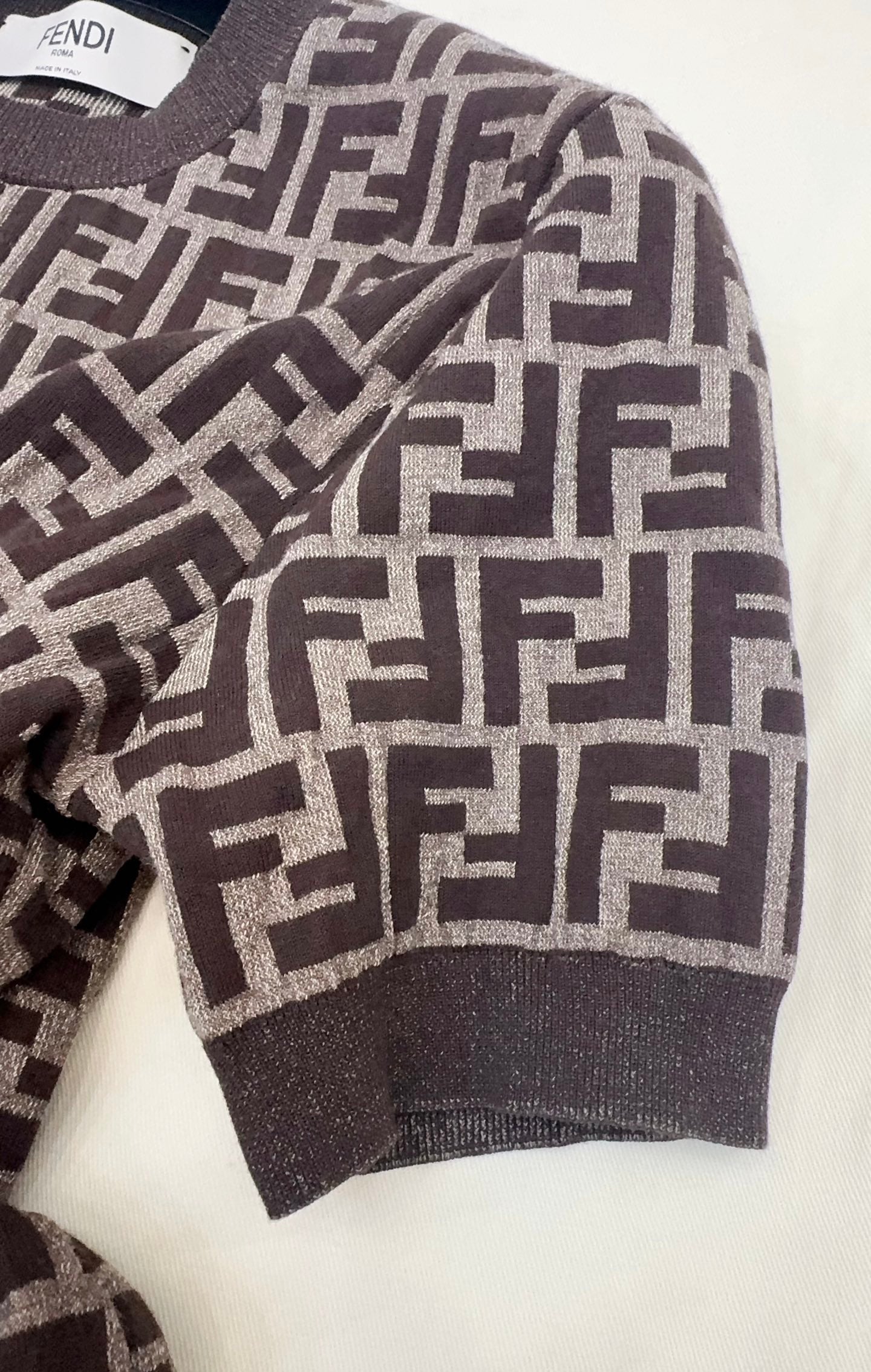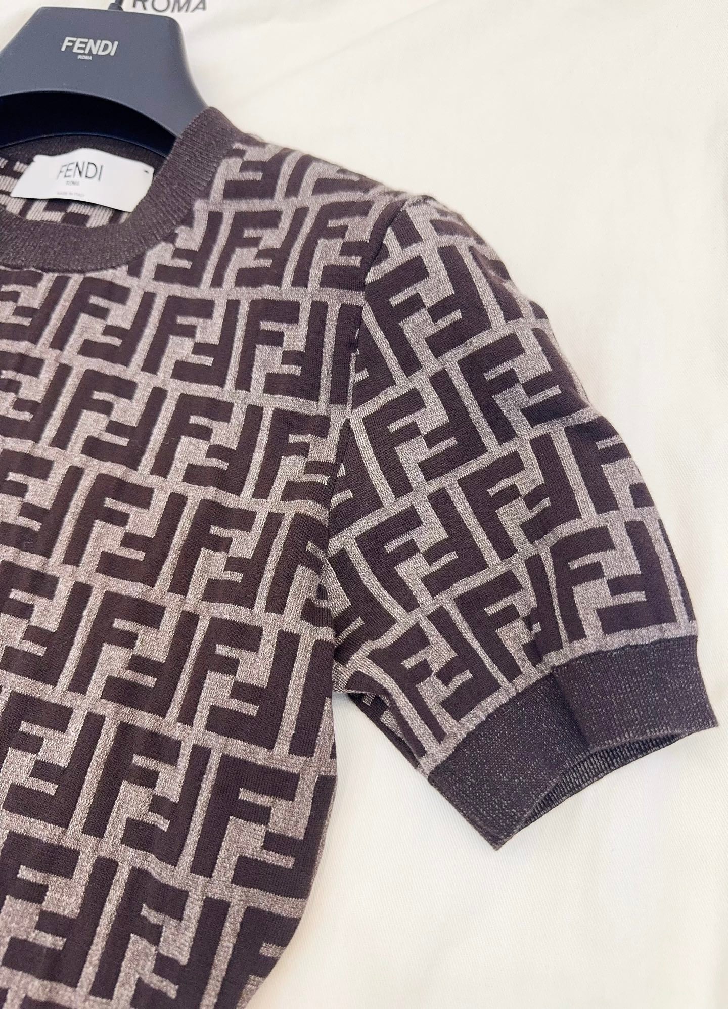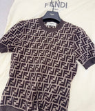 Fendi 25 Short-sleeved Knitted T-shirt Brown Cotton