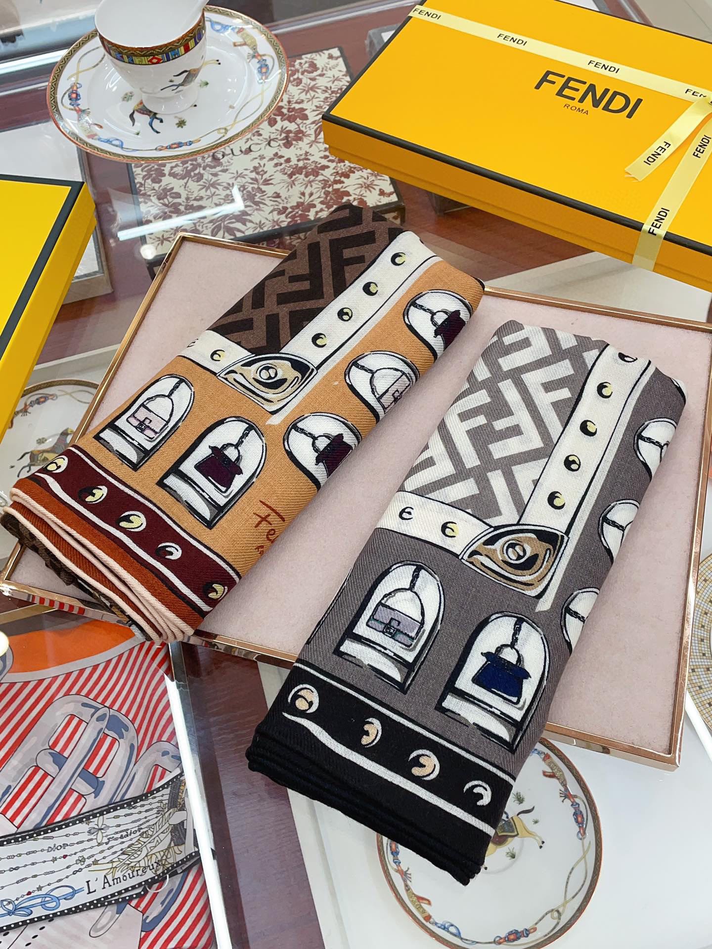 FOULARD 140 CM IN BROWN FF SILK CASHMERE